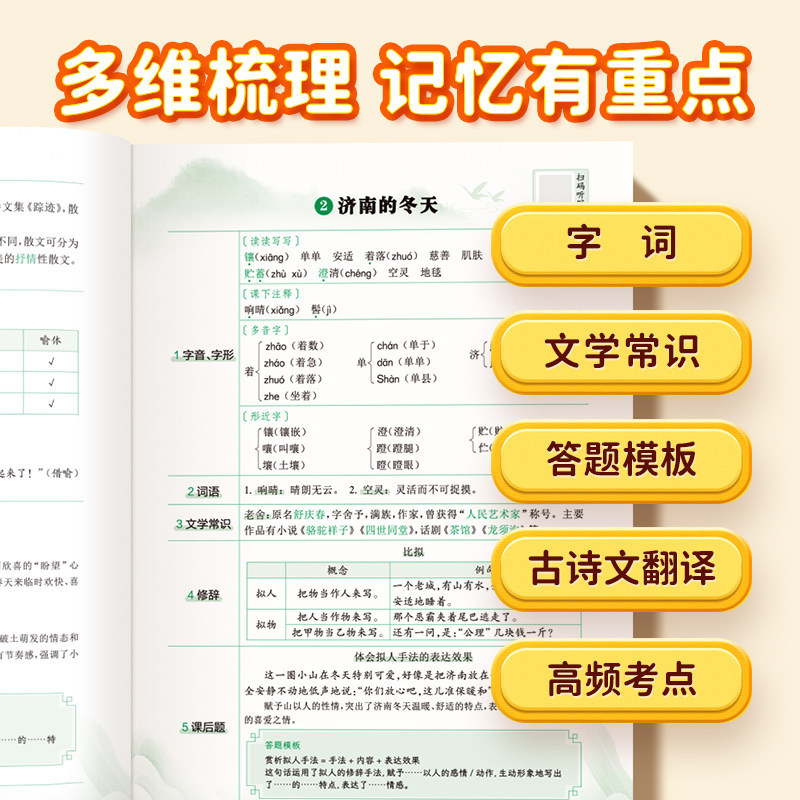 易蓓图书初中语文背记清单同步教材文学常识答题模板古诗文言文知识点考点大全七八九年级下册初默写本每日睡前归纳阅读人教总复习