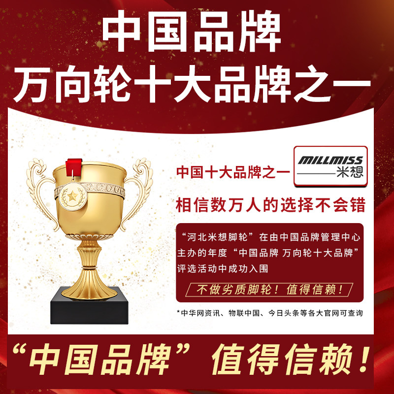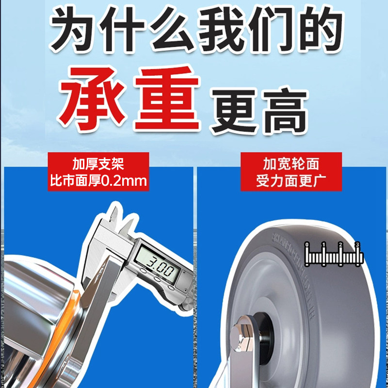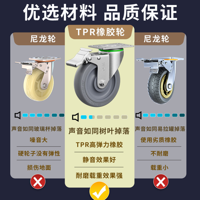 万向轮轮子345寸重型板车拖车静音脚轮橡胶轮滚轮尼龙轮刹车承重