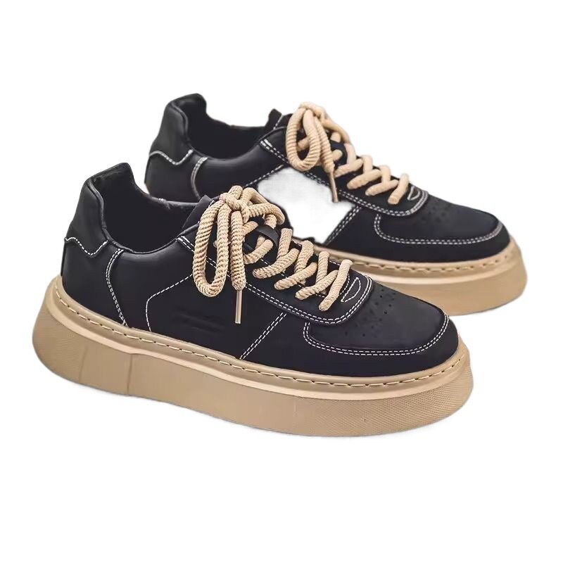 男鞋2025新款春季工作板鞋男士厚底休闲运动防滑耐磨劳保潮鞋黑色