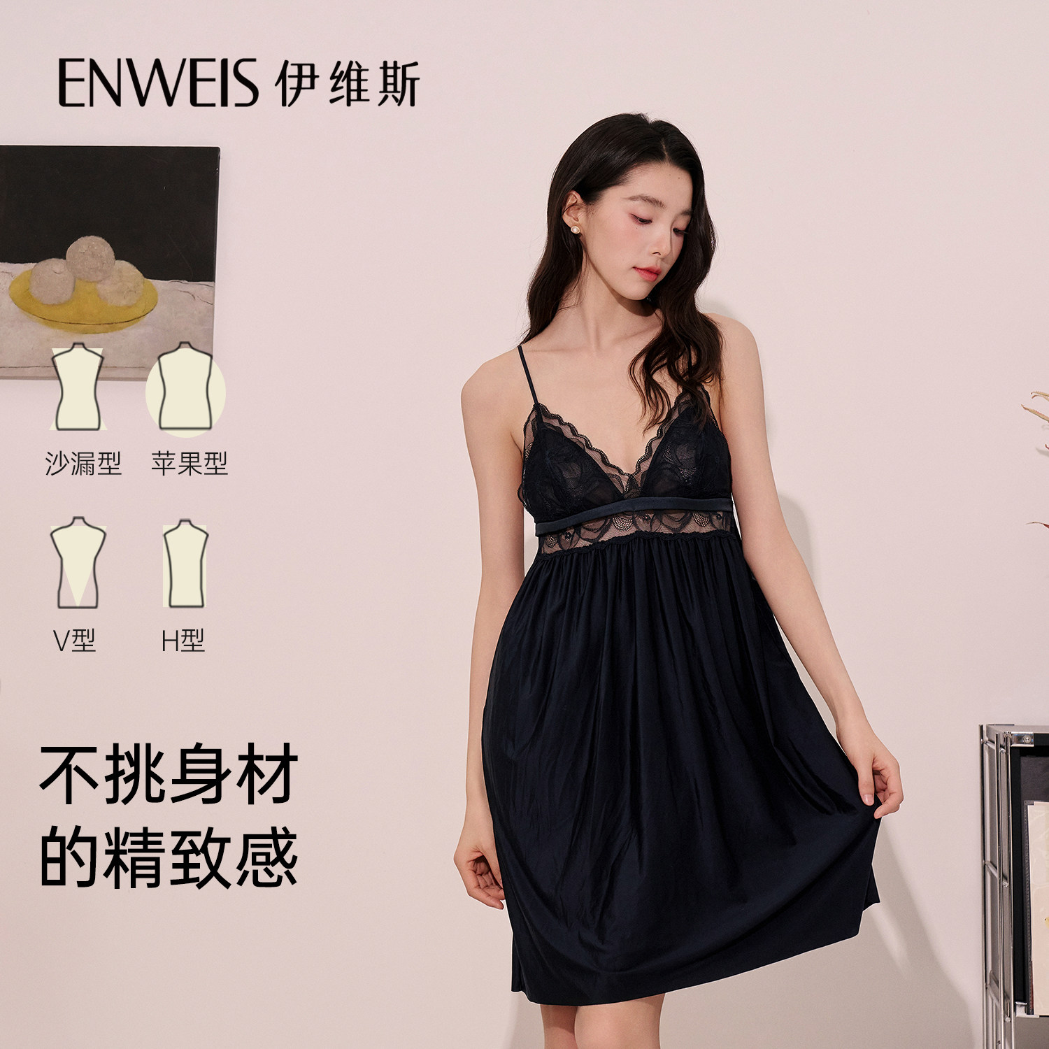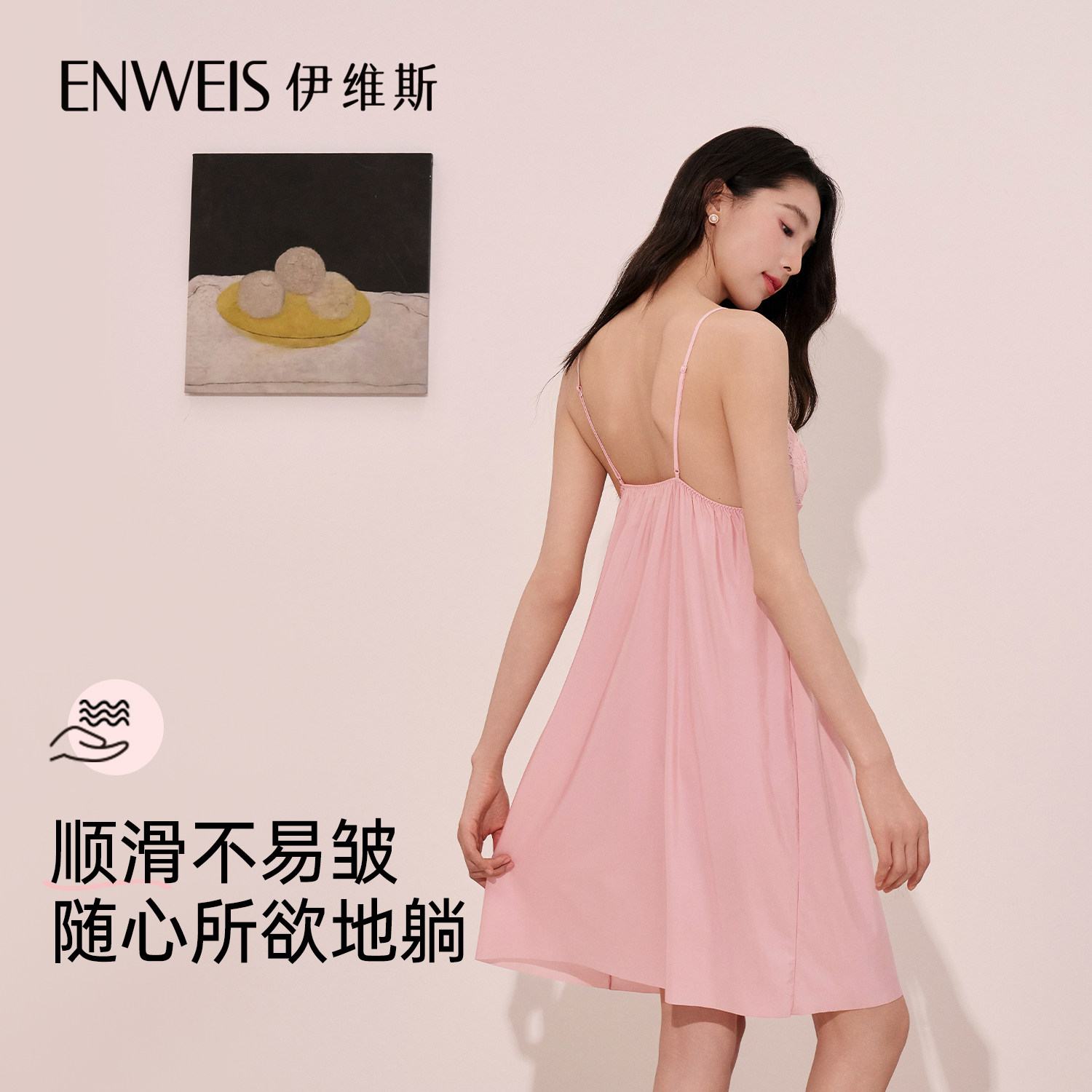伊维斯花语睡裙 吊带睡裙舒适蕾丝带胸垫冰丝家居服秋季新款