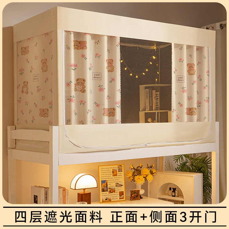 蚊帐学生宿舍上下铺三开门全遮光非涂层床帘防尘防蚊一体式免拼新