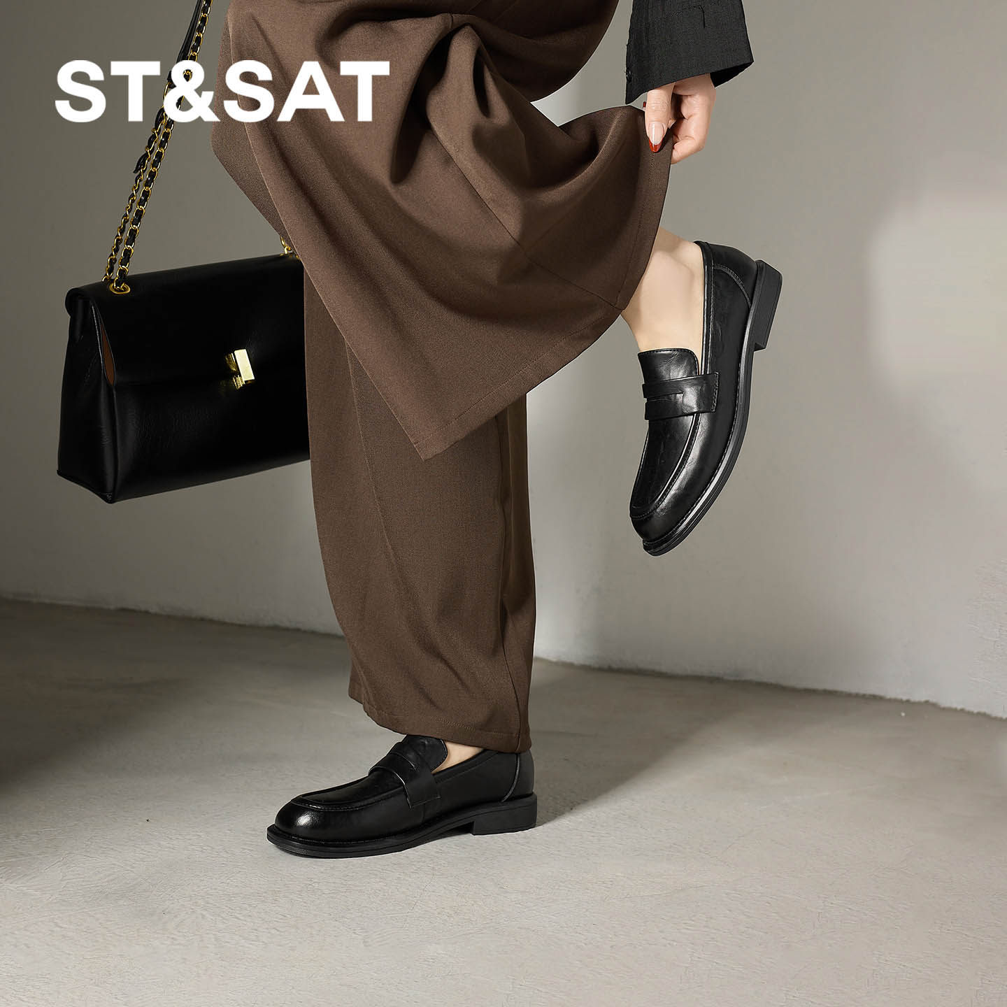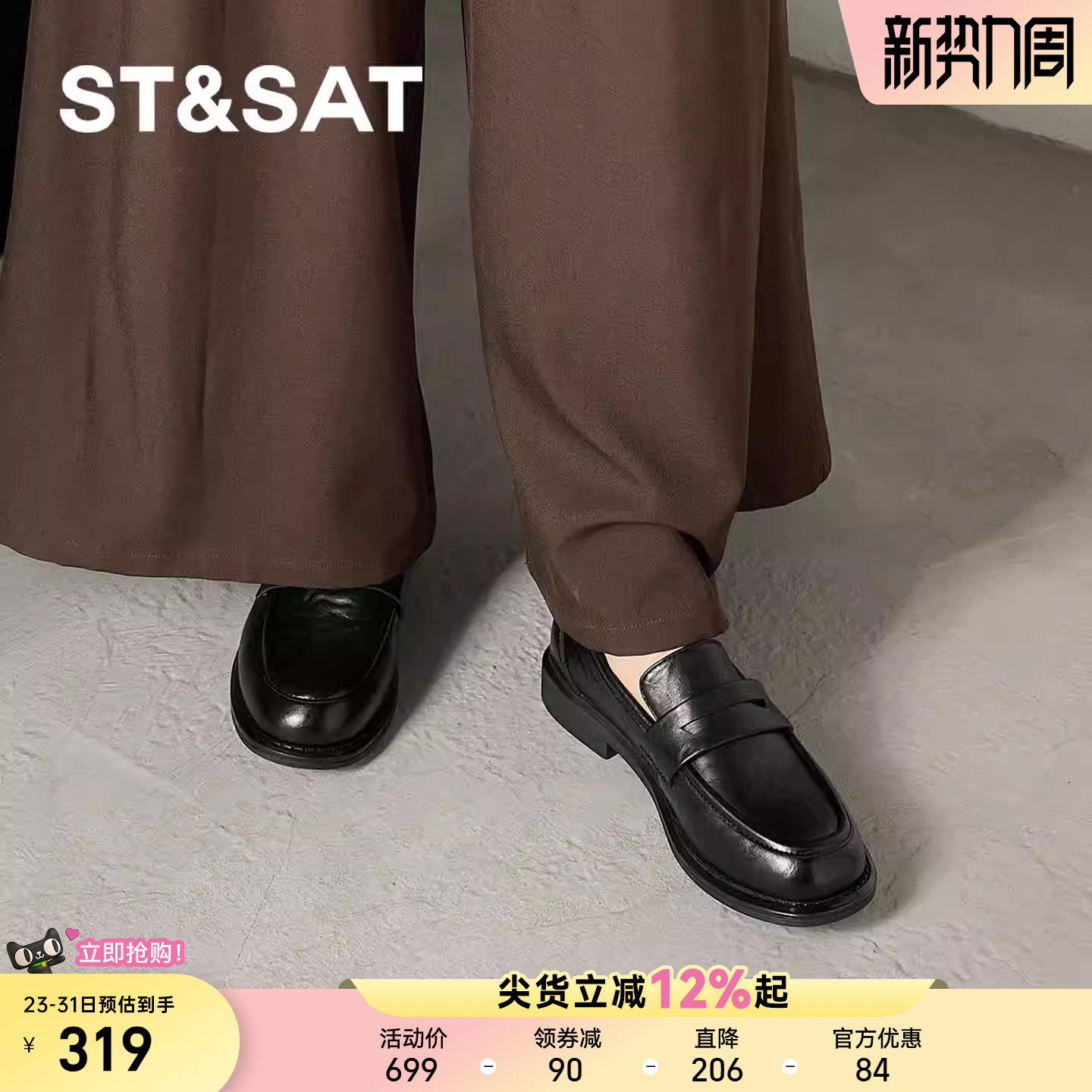 星期六平底乐福鞋女2026年春季新款复古黑色英伦风一脚蹬深口单鞋