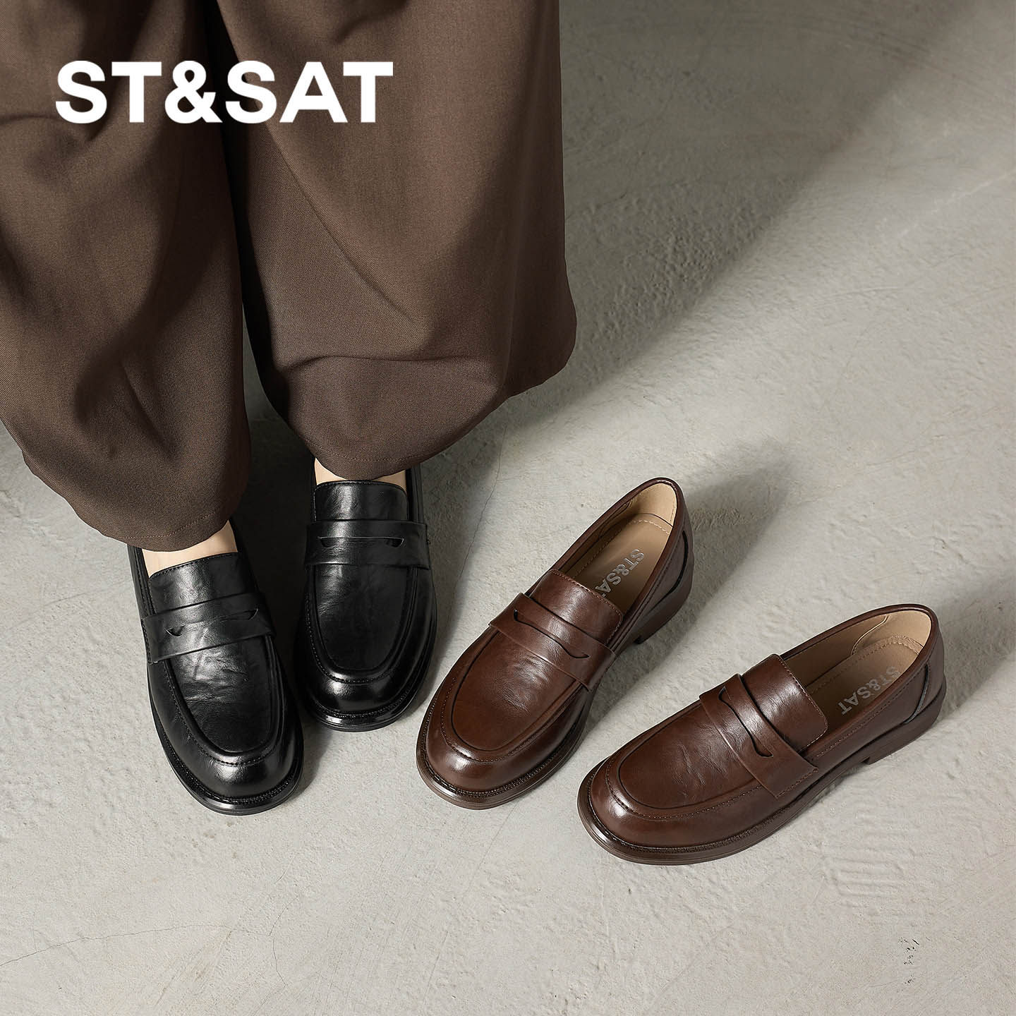 星期六真皮牛皮乐福鞋女鞋2025新款一脚蹬软底软面厚底英伦小皮鞋