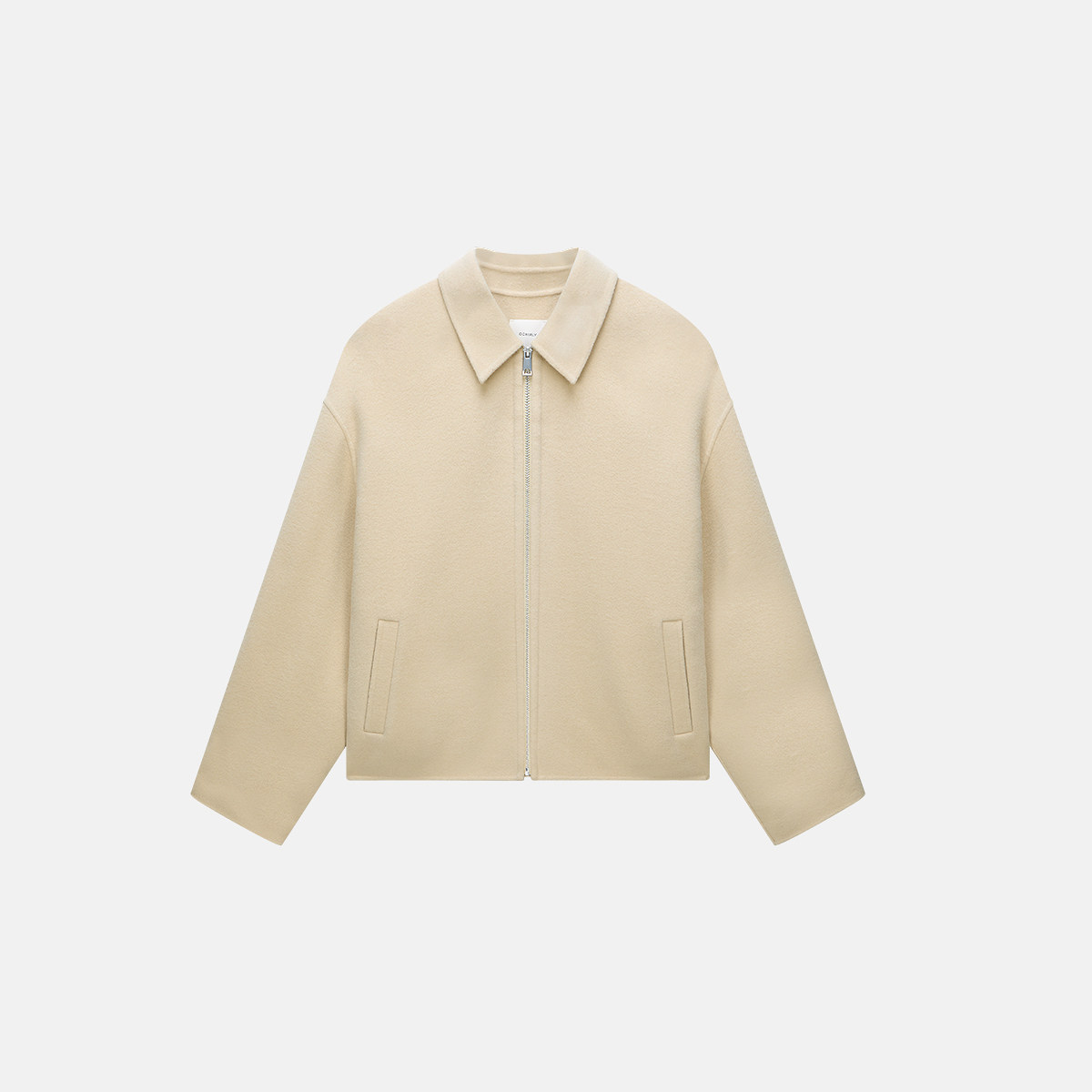 RUISHI芮时重磅驼绒桑蚕丝羊毛慵懒两穿领灰色毛呢大衣秋冬外套女