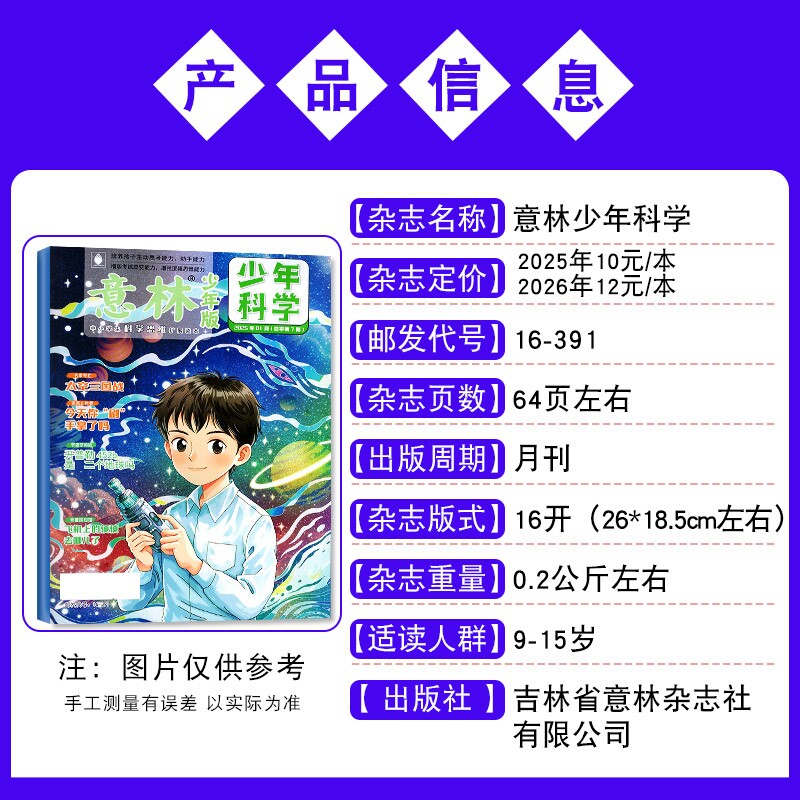 意林少年科学杂志2026年1/2/3月新【全年/半年订阅/2025年1-12月现货】2024年中小学生科普期刊书刊课外读物书籍非过刊意林小国学