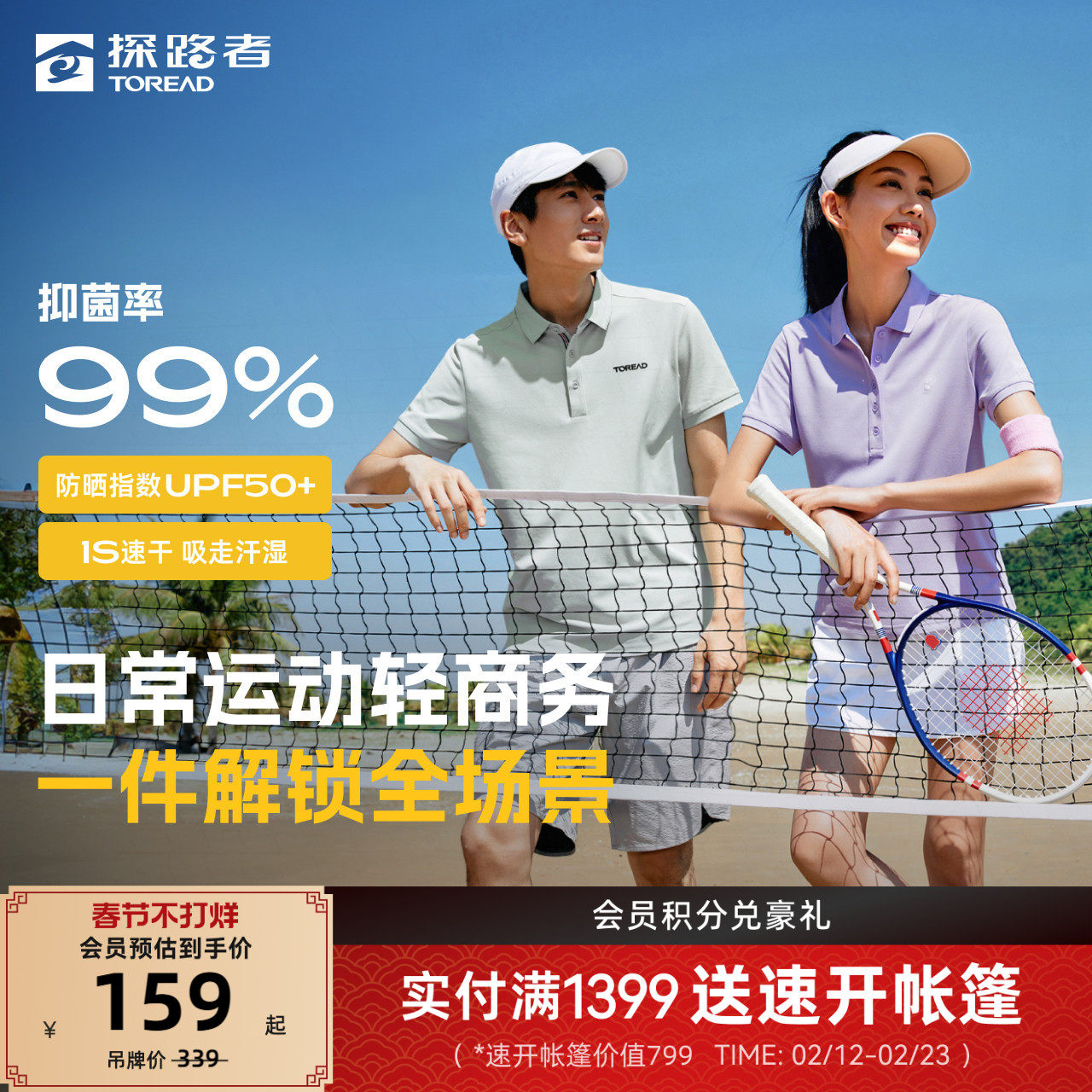 【探氧】探路者短袖男2026春夏情侣POLO衫防晒速干透气弹力T恤女