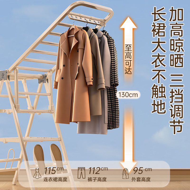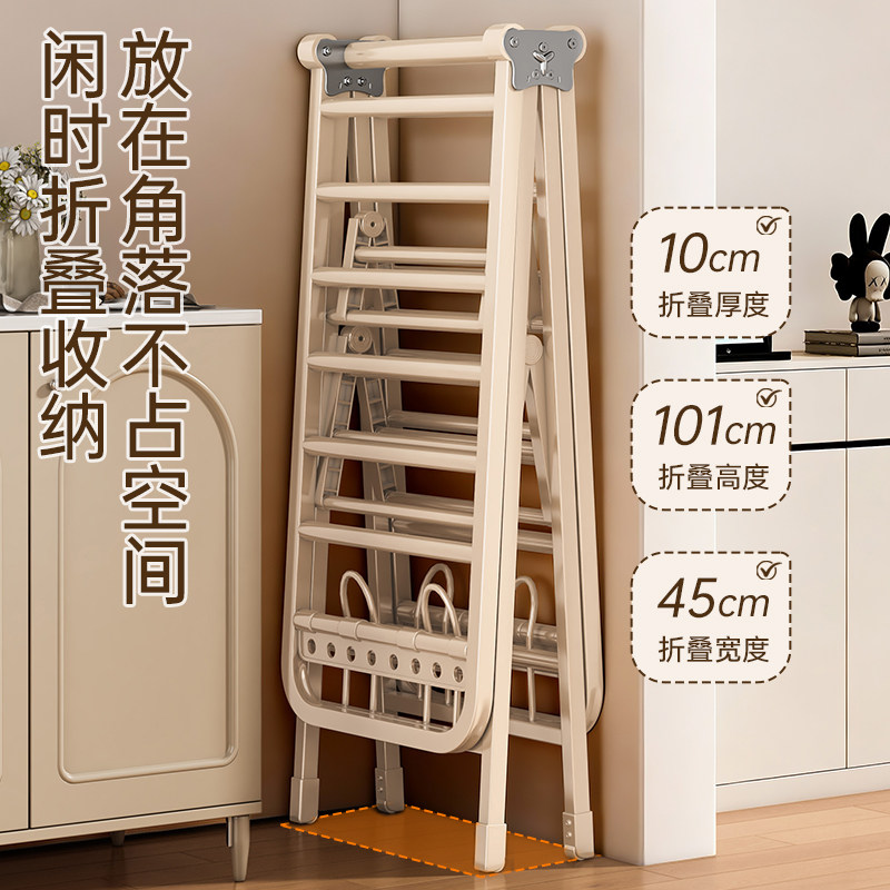 【国补】佳帮手奶油折叠晾衣架室内阳台家用凉衣服落地晒被子神器