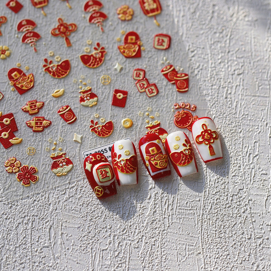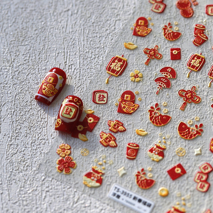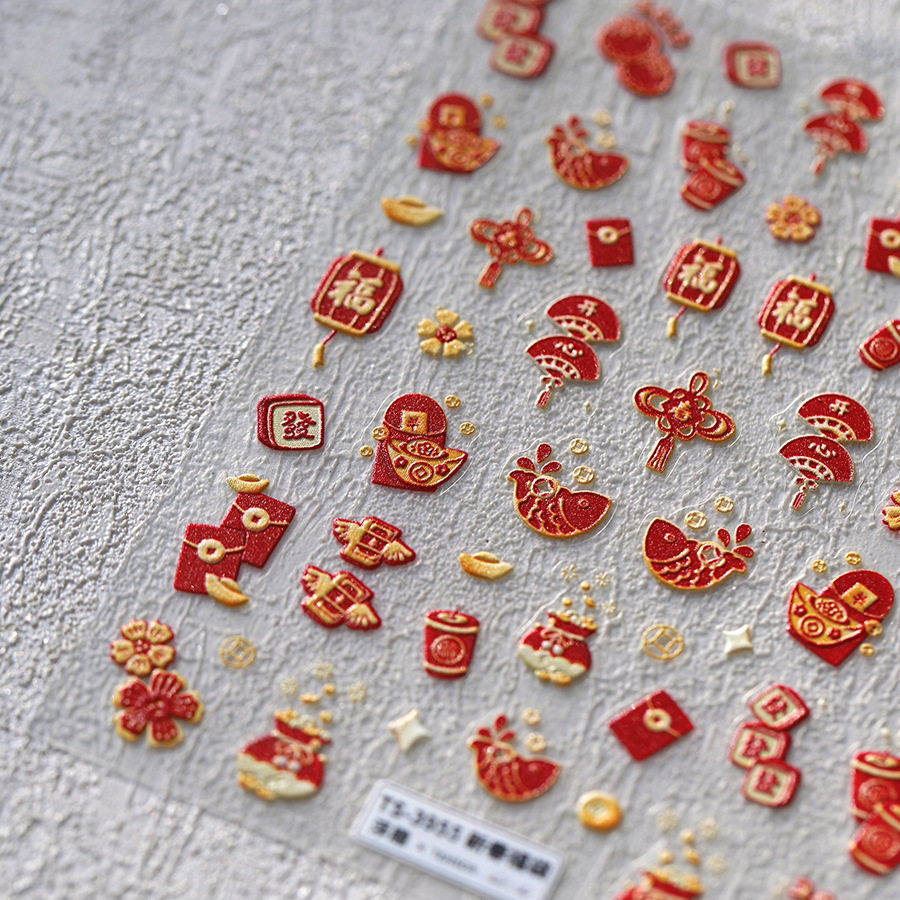 2026新年春节装饰立体浮雕美甲贴纸装饰指甲电脑手机iPad相机贴画