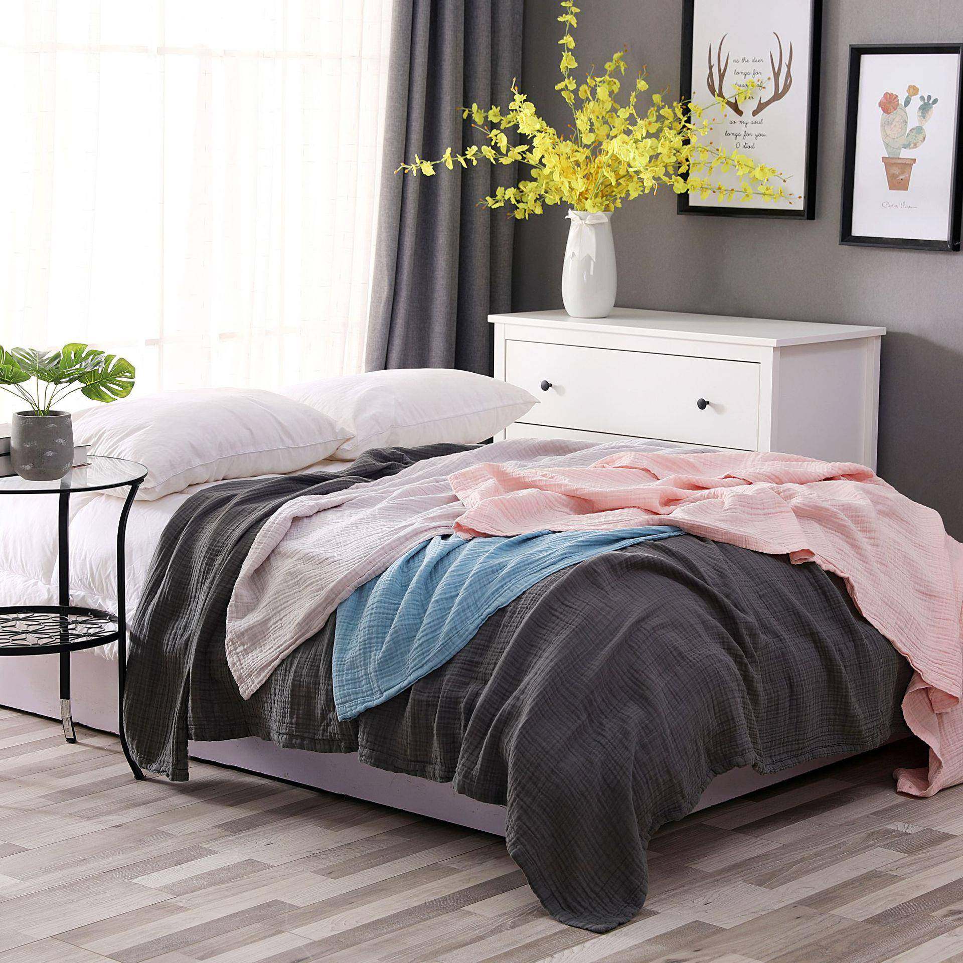 纯棉三层日韩风毛巾被素色成人家用毛巾被吸汗柔软舒适毛巾被