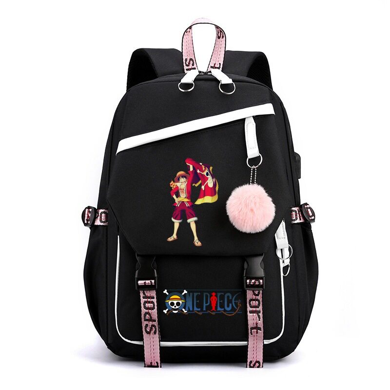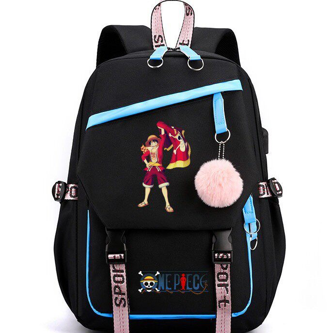 海贼王卡通印花双肩背包USB百搭护脊减负学生书包帆布包