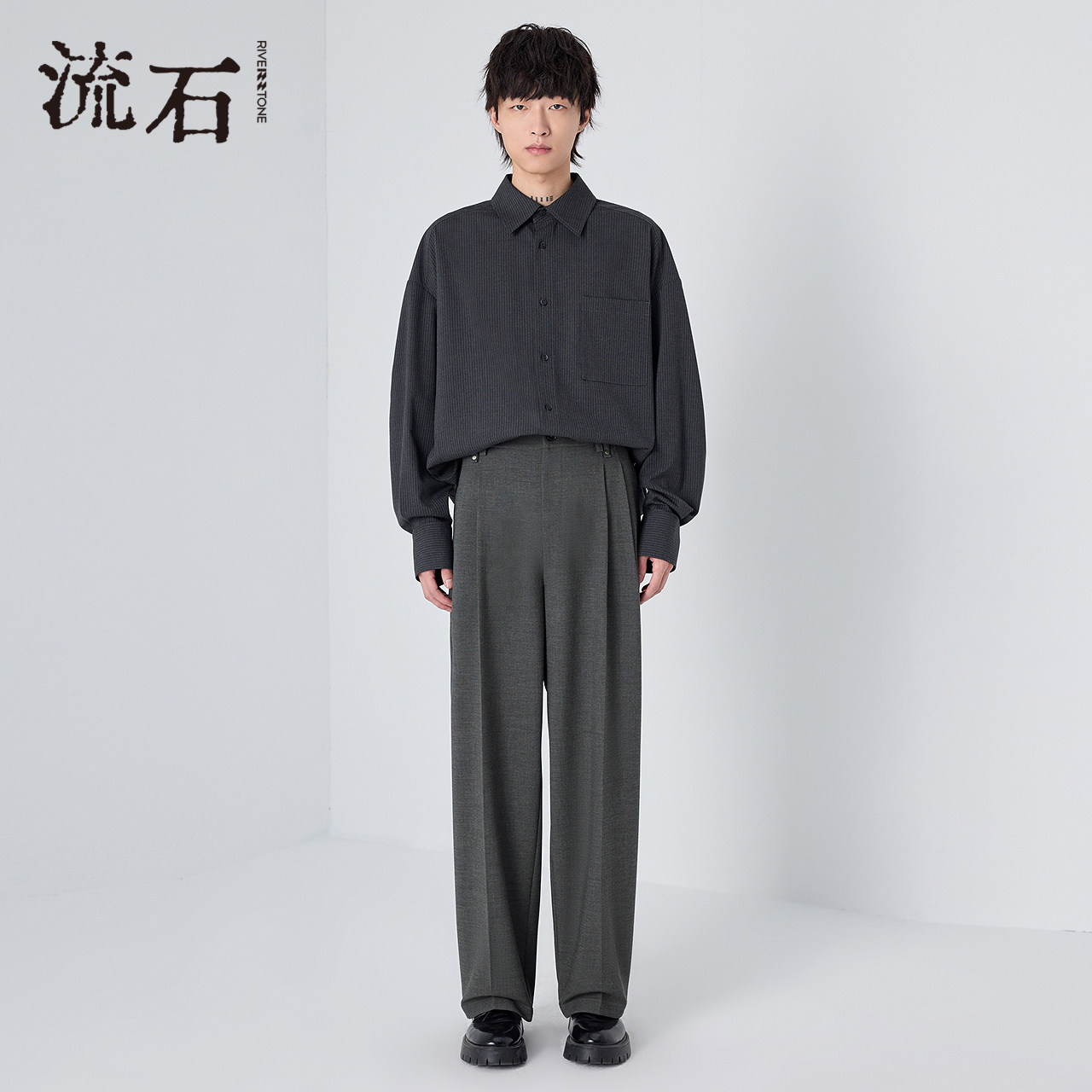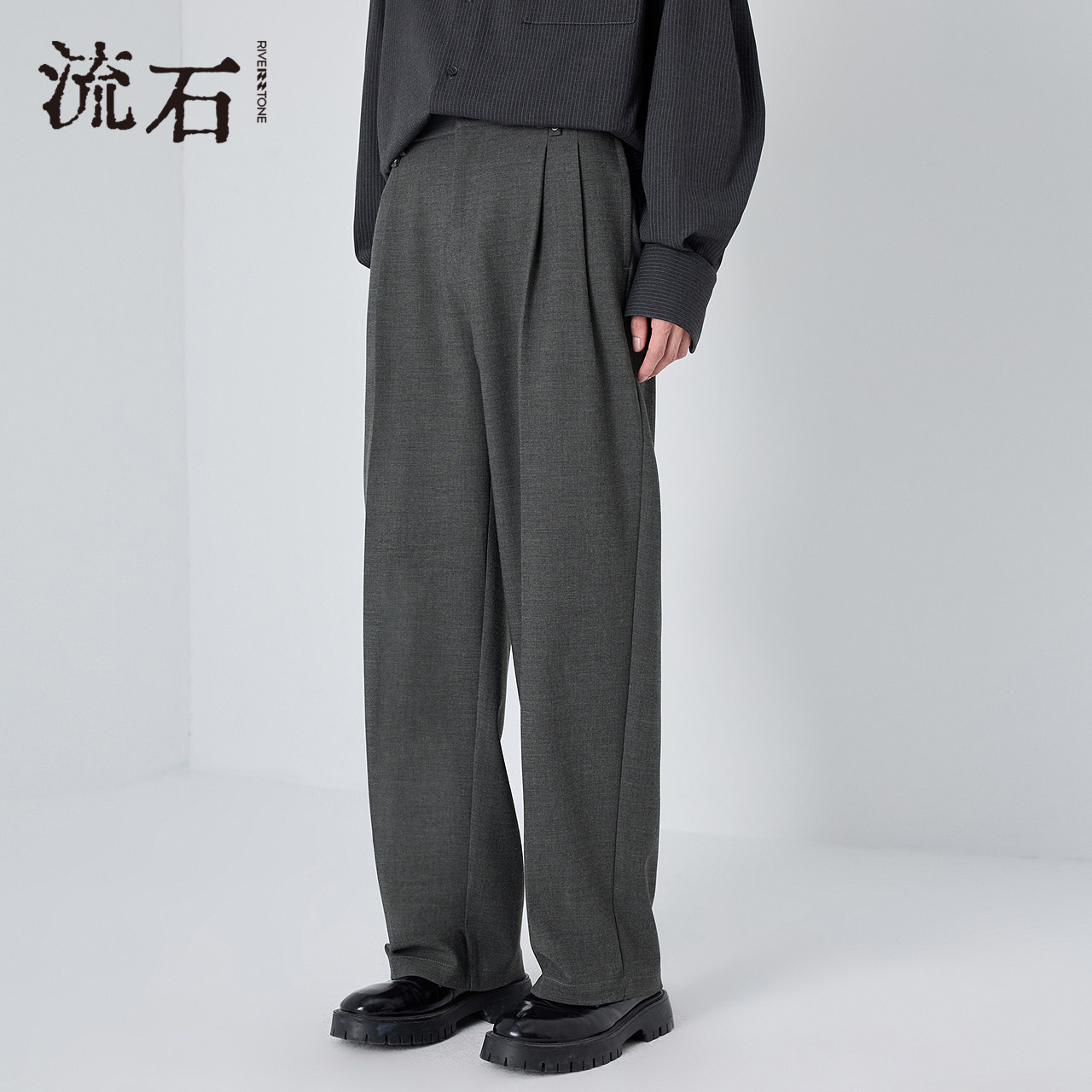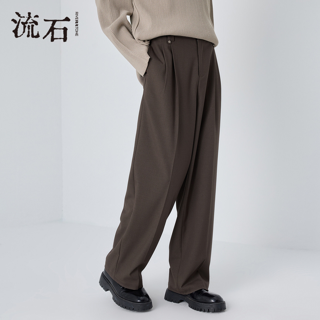 流石男装高端宽松休闲长裤子2026新款春秋季男士简约时尚直筒西裤