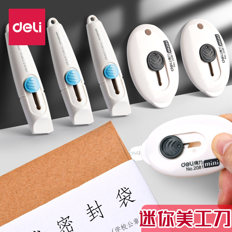 得力美工刀小号美术开箱器拆快递割包裹神器考研专用小型小刀迷你学生可爱刀片手工裁纸刀钥匙扣随身便携批发
