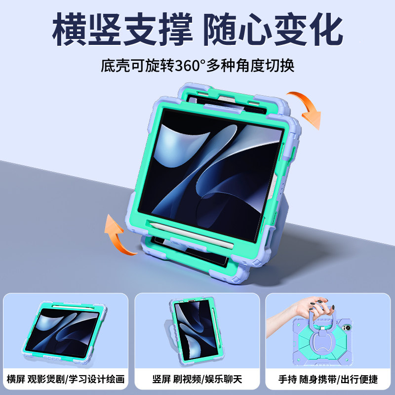 360°旋转横竖支撑壳 全包三层防摔防弯硅胶