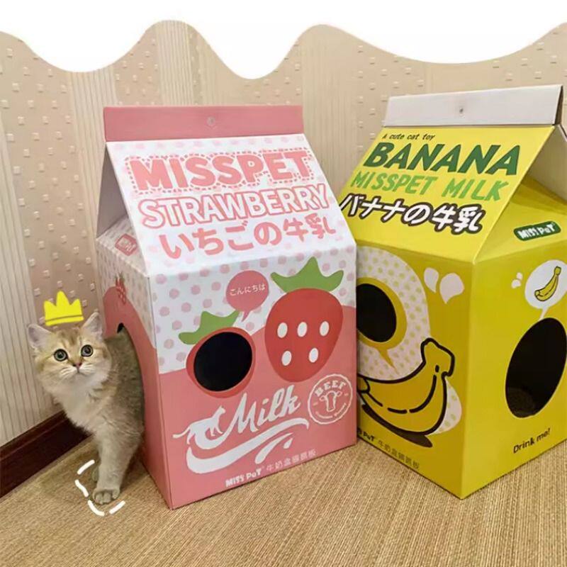 胖橘 misspet 牛奶盒猫抓板猫窝猫屋睡觉纸箱瓦楞纸猫咪玩具可爱