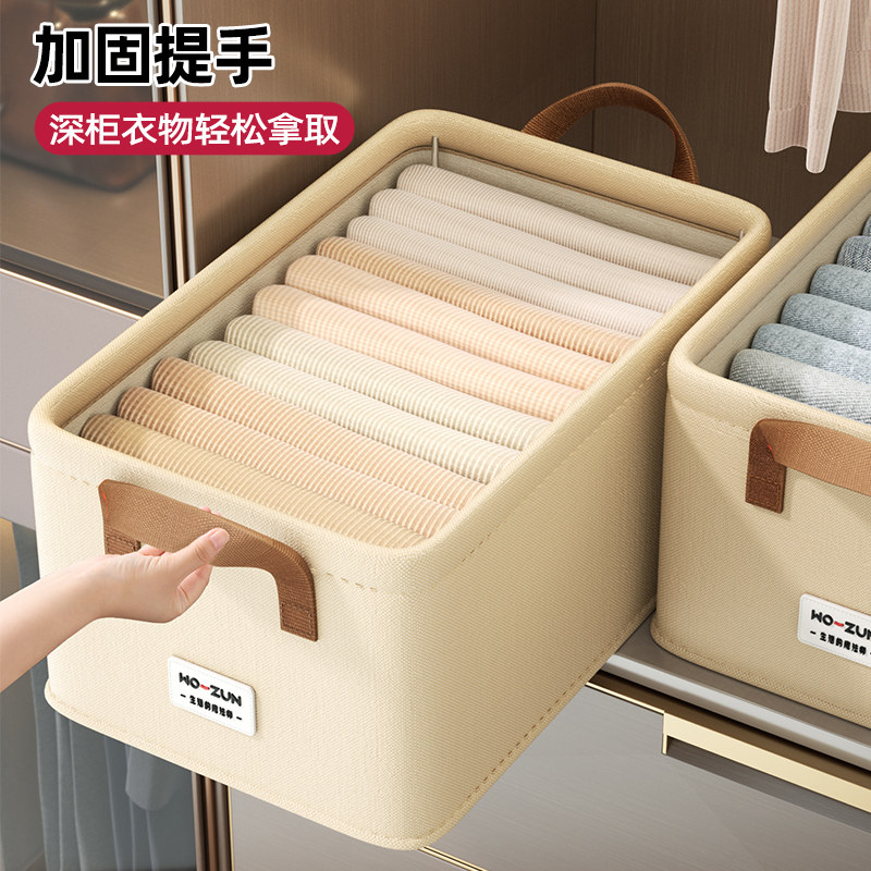 拍1发4衣服收纳筐神器布艺装衣物衣柜分层收纳箱家用框裤子整理盒