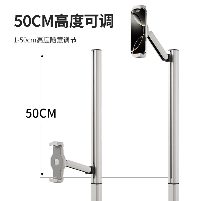 乐得落地支架手机iPad平板通用带滚轮可移动磁吸底座滑轨调节高度客厅沙发懒人架直播追剧专用多功能支撑架子