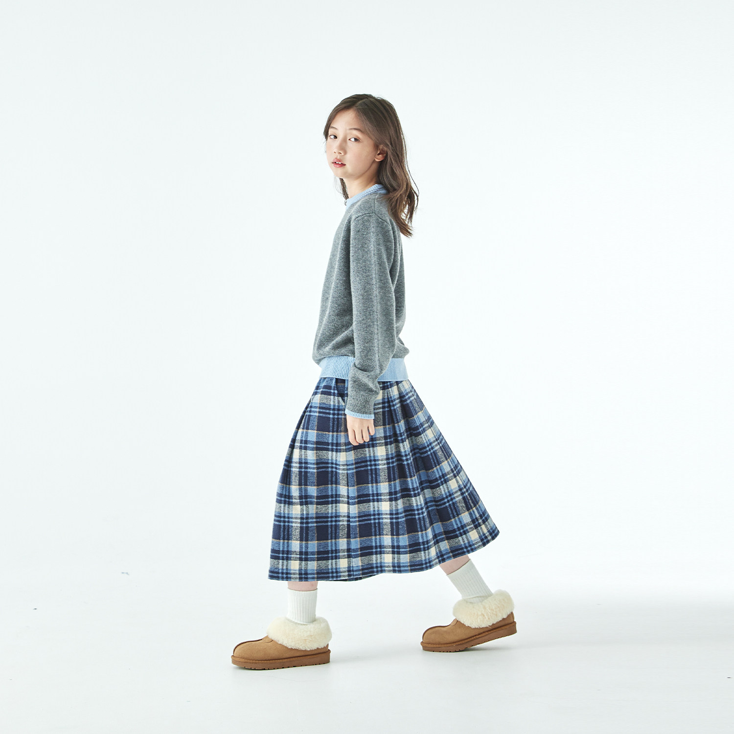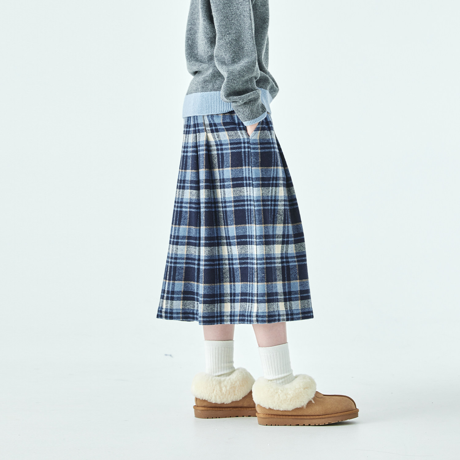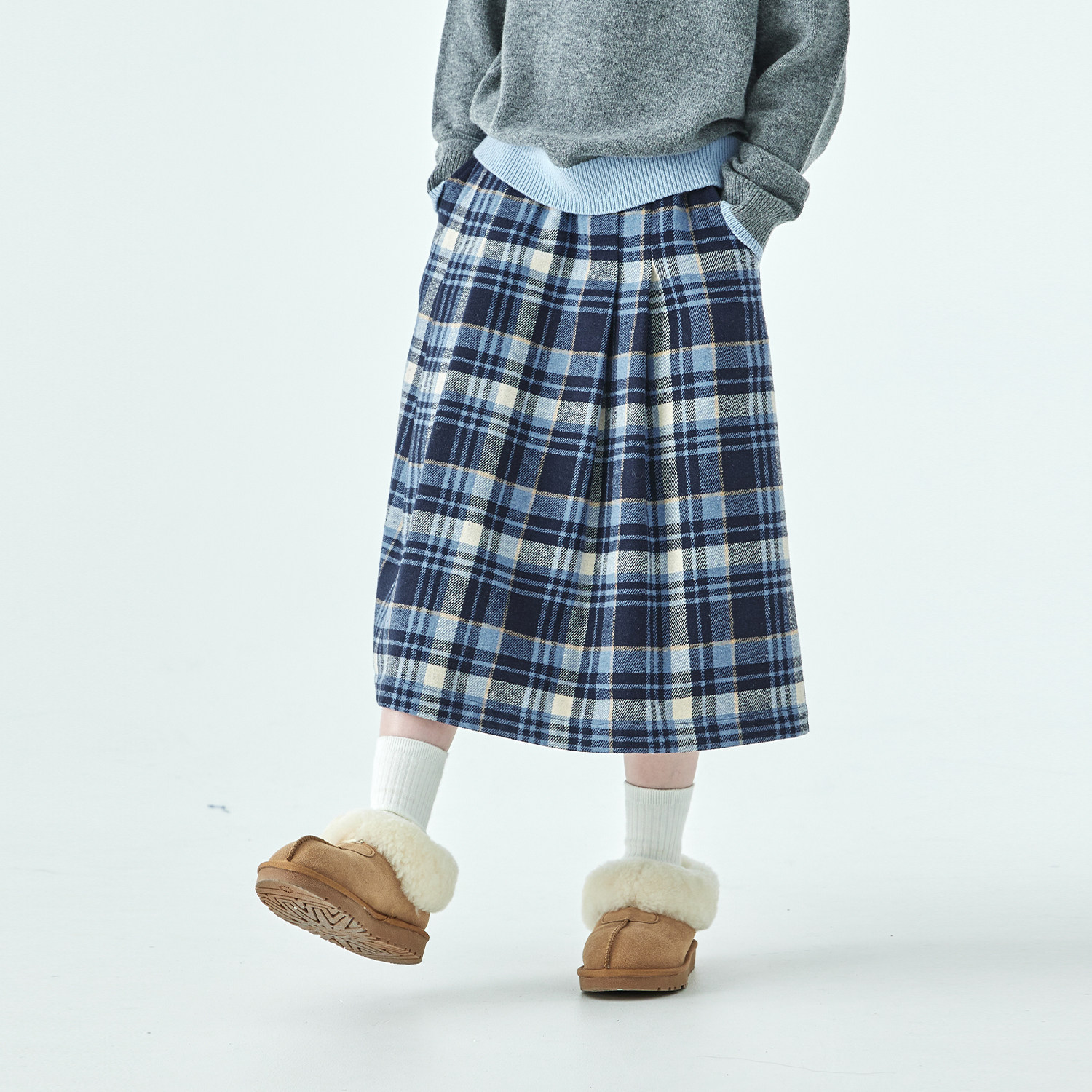 棵初2025年秋冬新款亲子中大女童学院蓝白格纹半裙清新文艺风裙子
