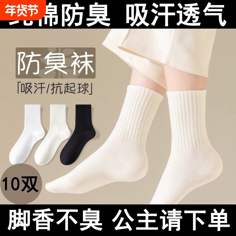 袜子男女纯棉防臭春秋冬季无骨袜不起球中筒薄防抗菌袜吸汗脚气