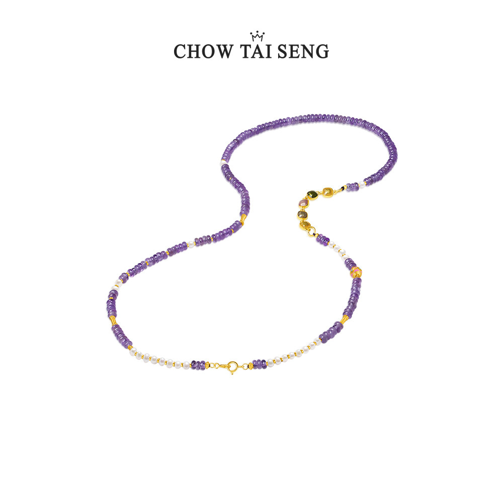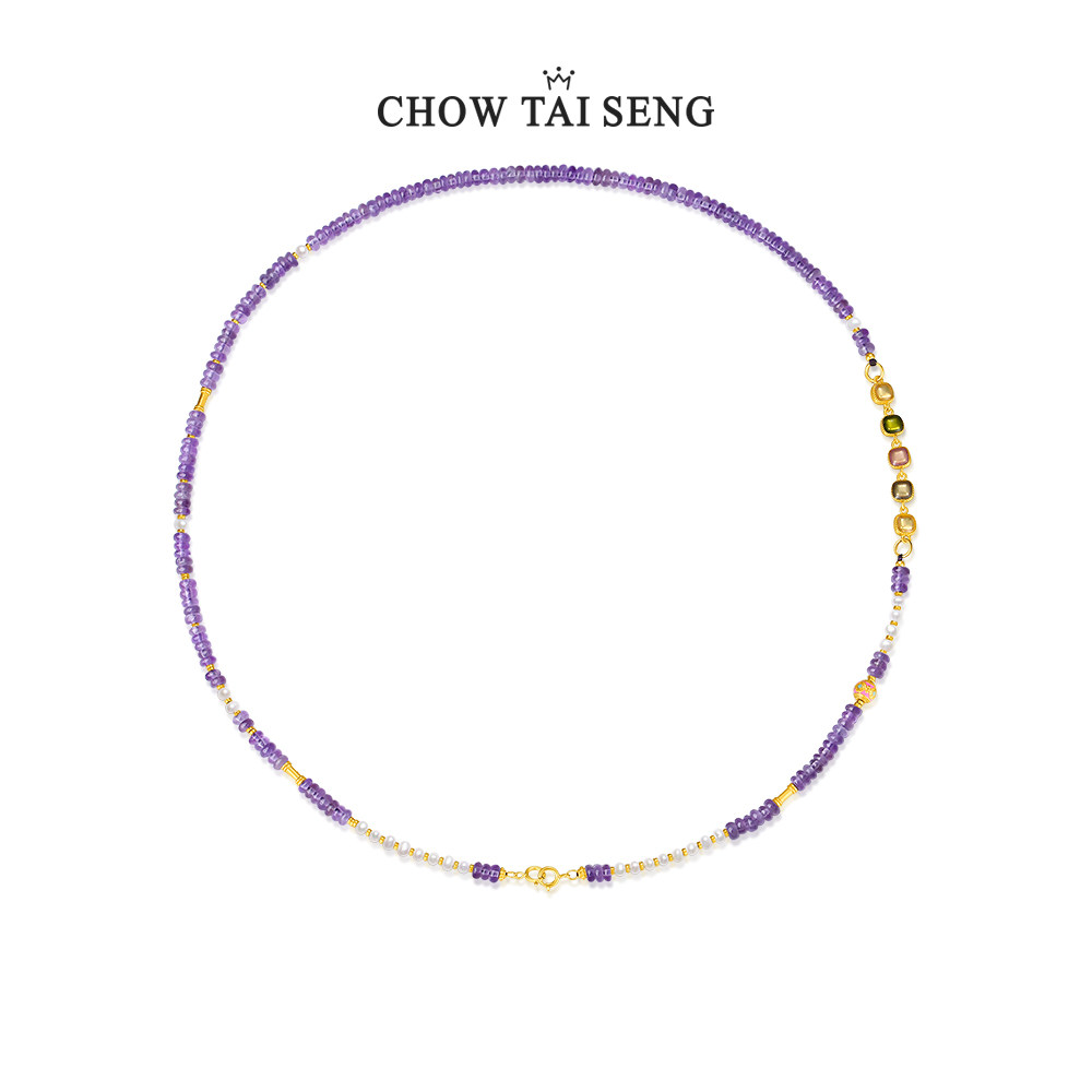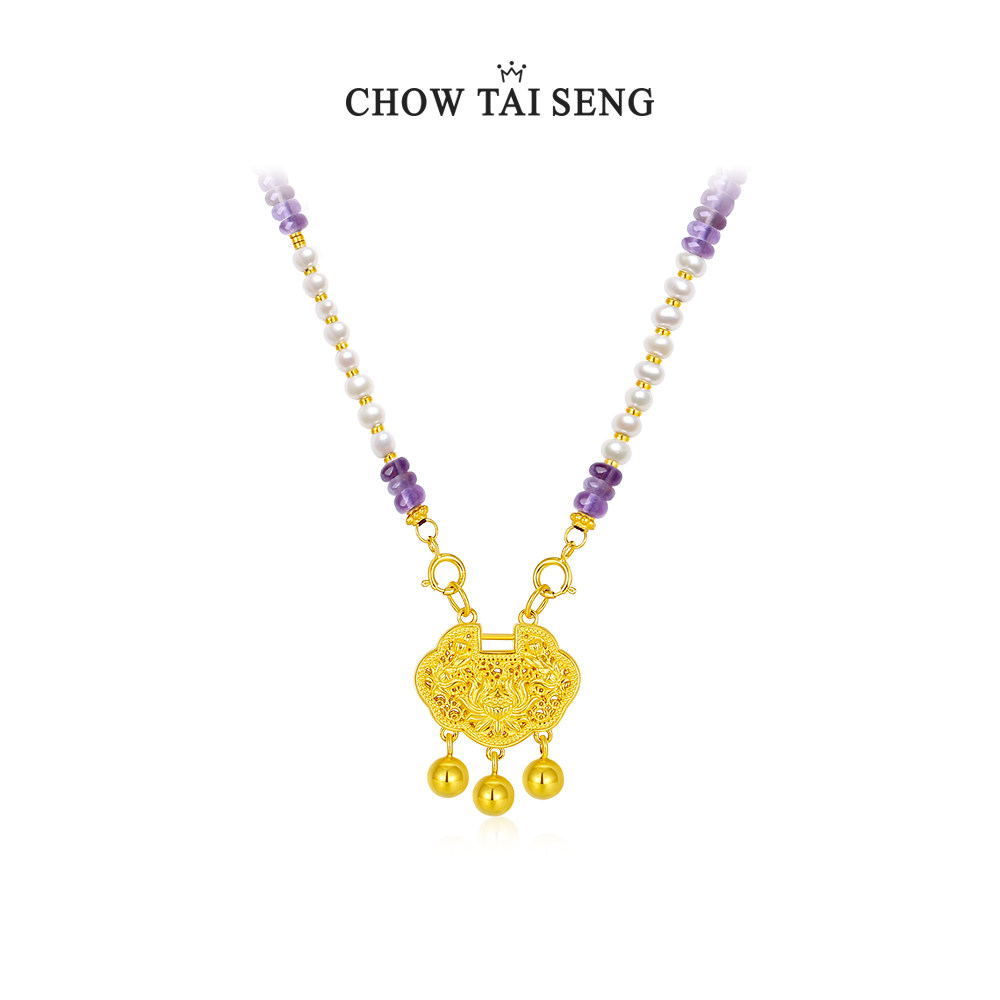 周大生紫水晶锁骨链珍珠国风项链女银轻奢高级感生日礼物送女友