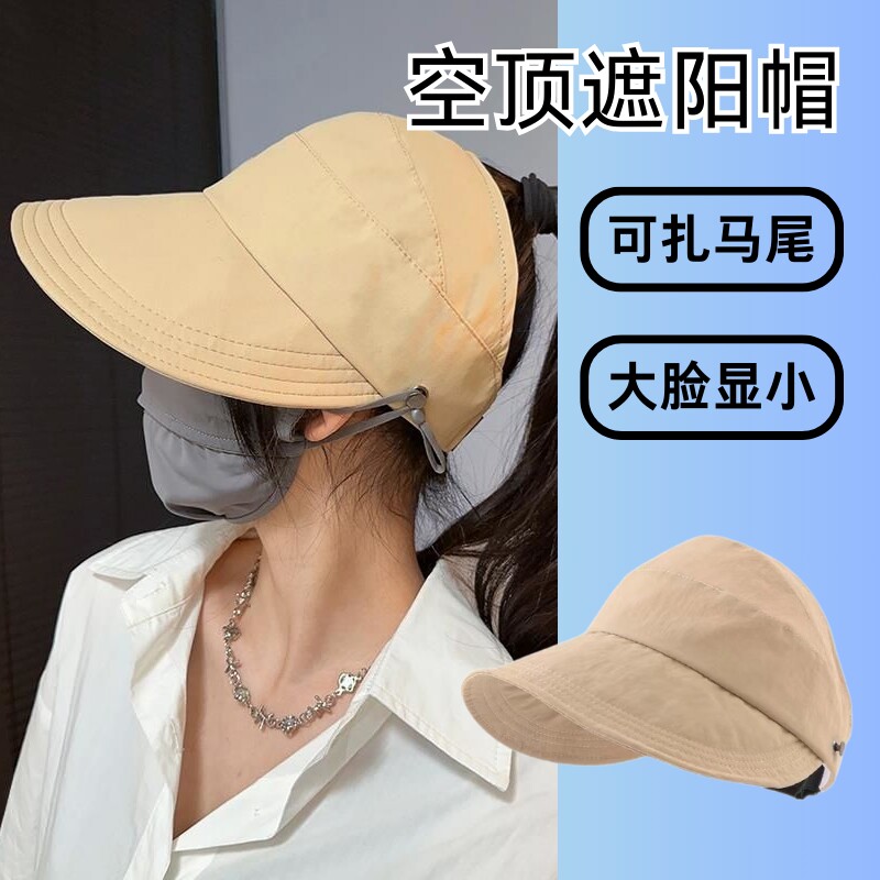 防晒帽帽子女款2024新款渔夫帽空顶扎马尾大帽檐遮阳帽大脸可折叠