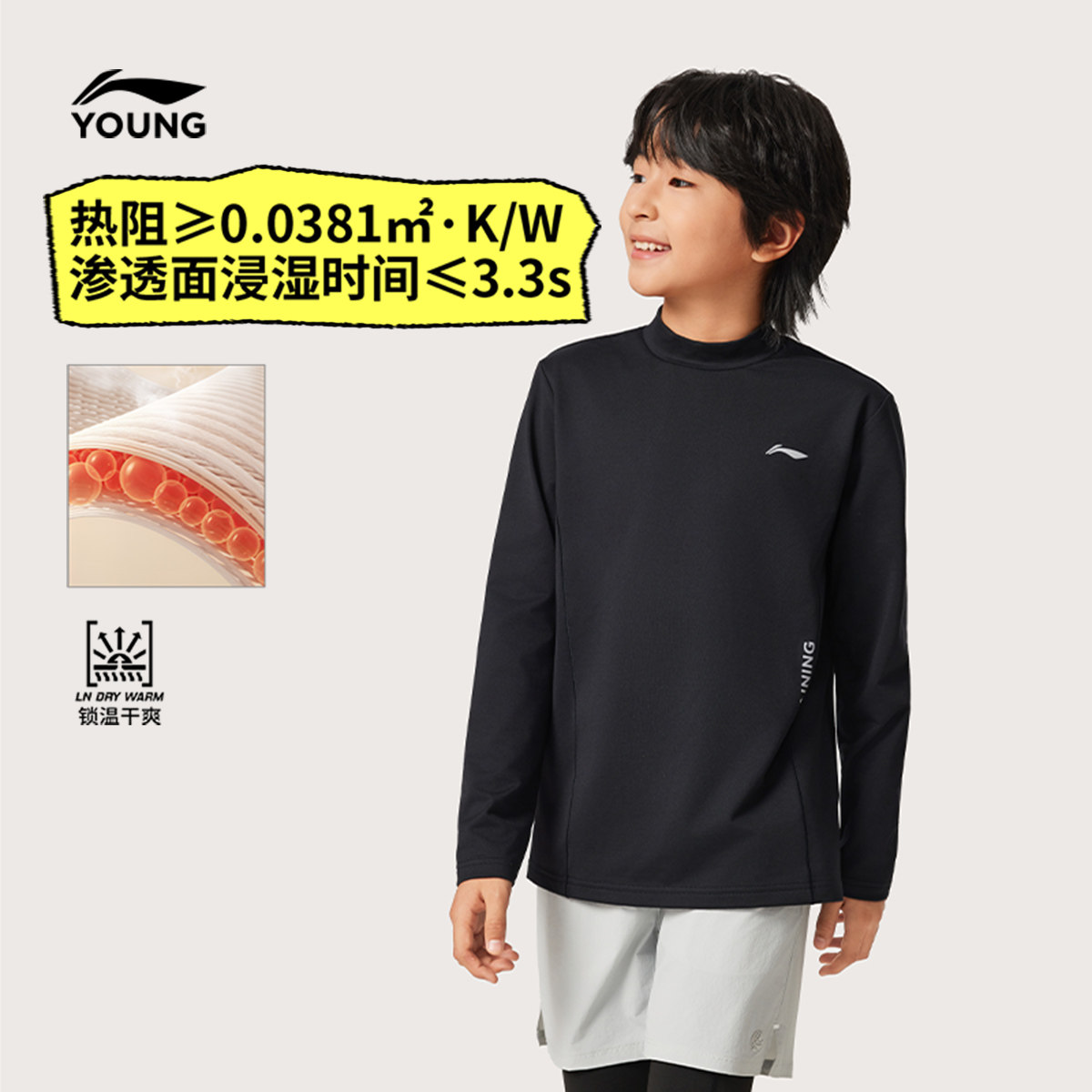 李宁儿童加绒打底衫长袖T恤2025新款秋冬款男童装女童中大童冬装