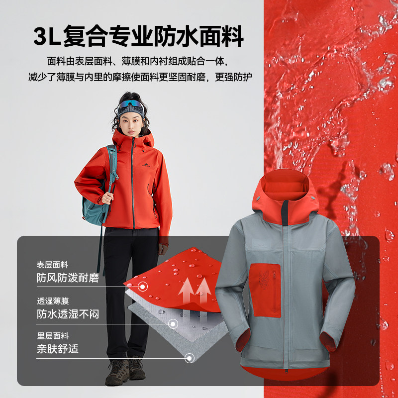 明星同款【朱雀PRO冲锋衣】拓路者3L硬壳防风防水徒步登山外套女