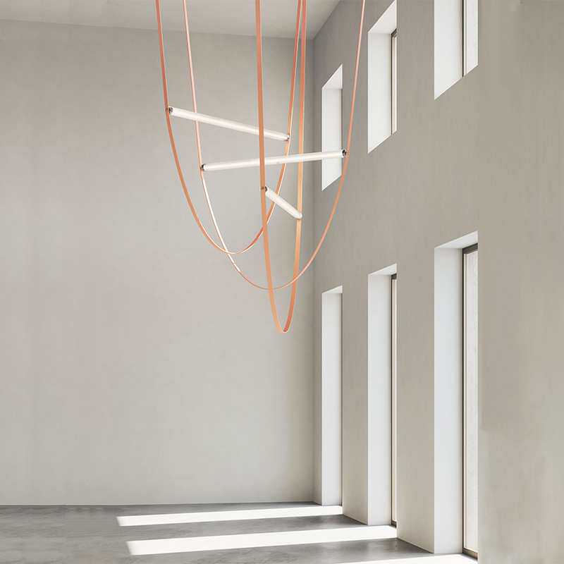 意大利极简皮革带吊灯loft挑高复式楼梯灯设计师北欧艺术餐厅灯