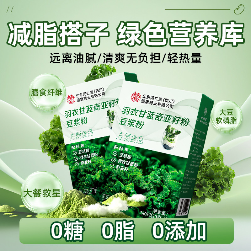 同仁堂羽衣甘蓝奇亚籽豆浆粉官方旗舰店饱腹代餐粉冲饮原味经典