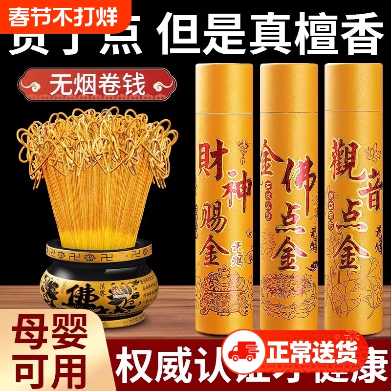 无烟黄金香家用供香财神香卷钱礼佛金香檀香招财敬菩萨观音关公香