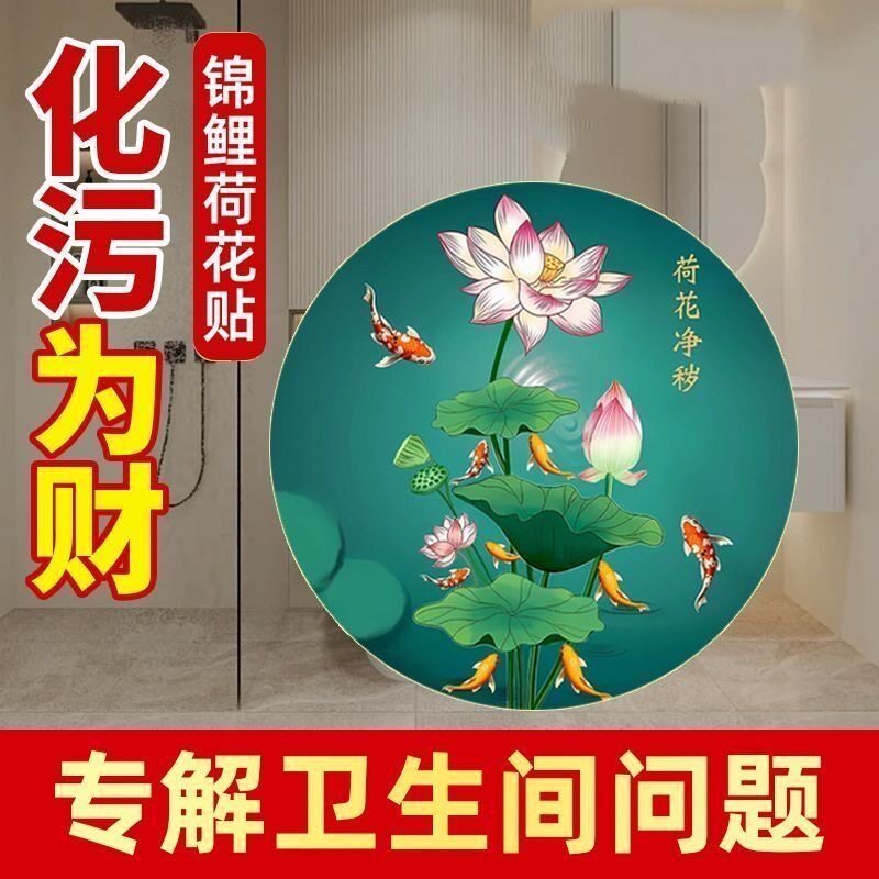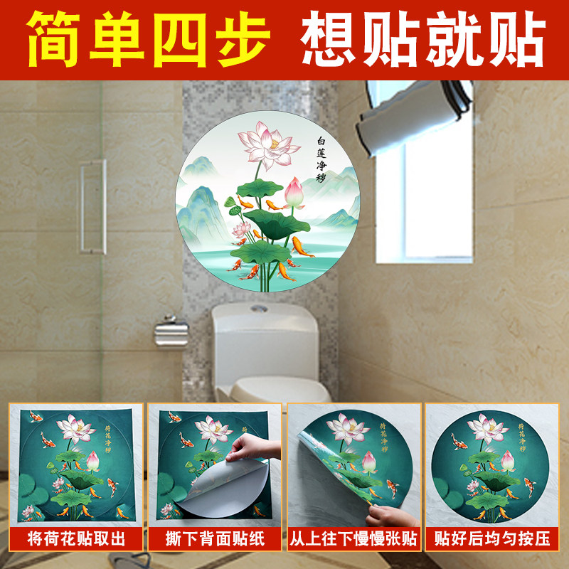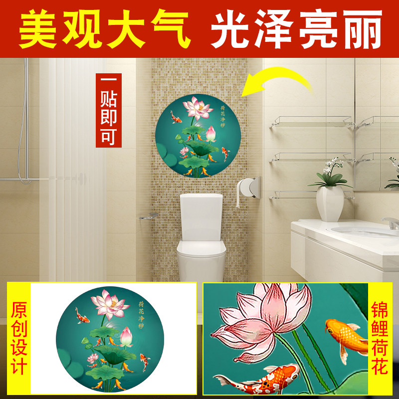厕所荷花鲤鱼图净秽锦鲤图厨房卫生间专用防水自粘画九鱼贴纸卧室