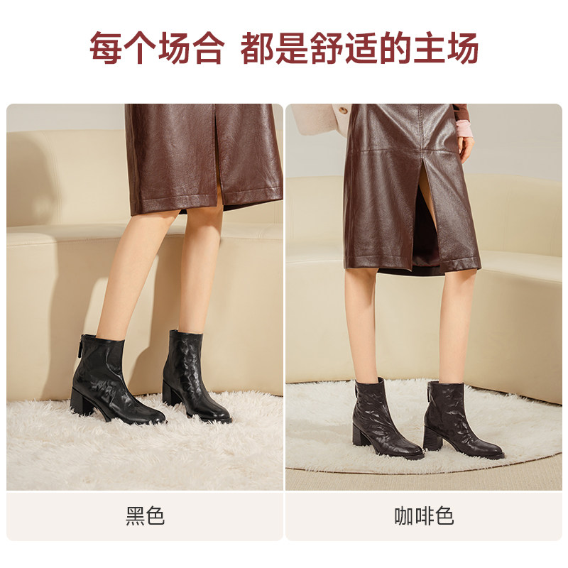 天美意厚底英伦奶皮靴加绒切尔西短靴女鞋子时装靴皮靴2025冬新款