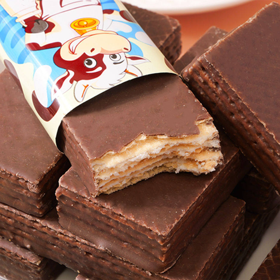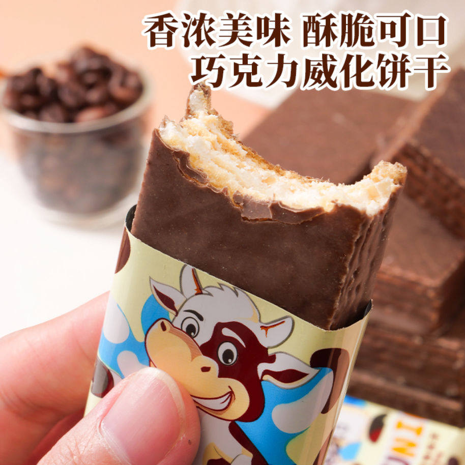 过年大奶牛巧克力威化饼干俄罗斯休闲牛奶零食非进口整箱4斤夹心