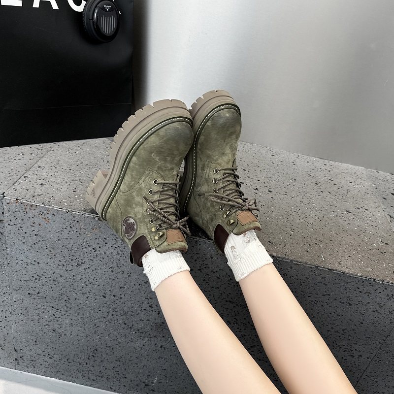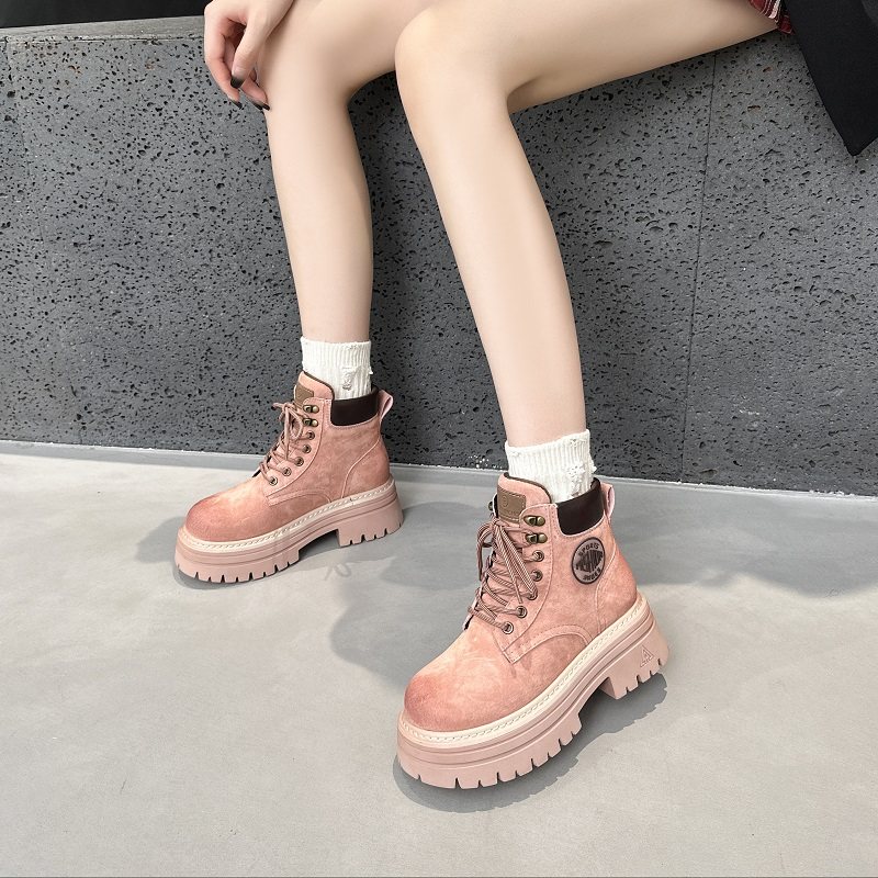 增高厚底复古女款2025新款小众方头松糕厚底jk短靴小个子马丁靴