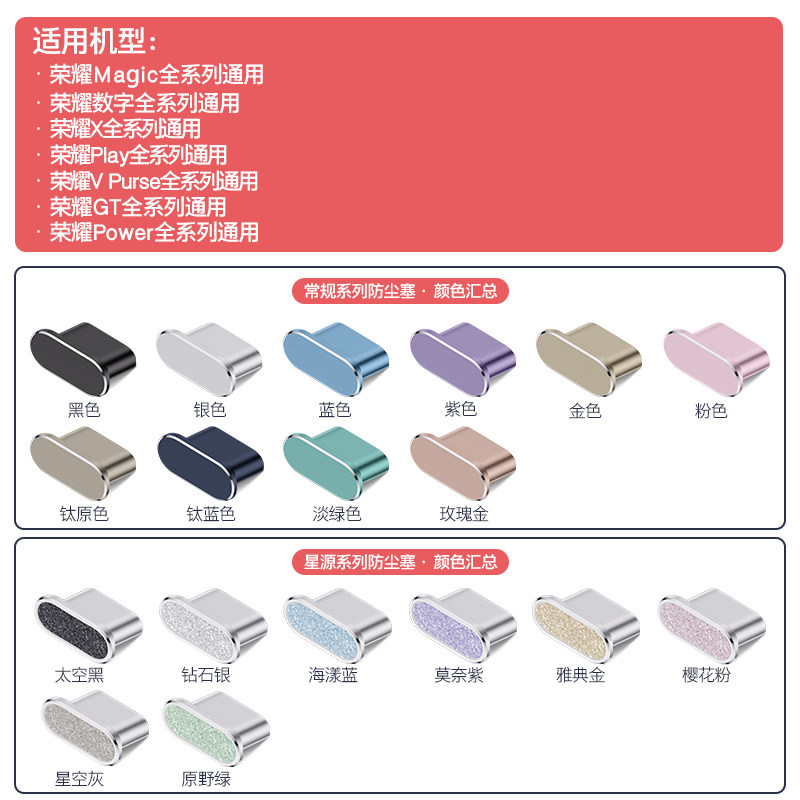 【立减】荣耀500Pro充电口防尘塞X70i荣耀Magic8Pro手机电源塞Play10T数据口防灰WIN电脑平板V9畅玩70电源口