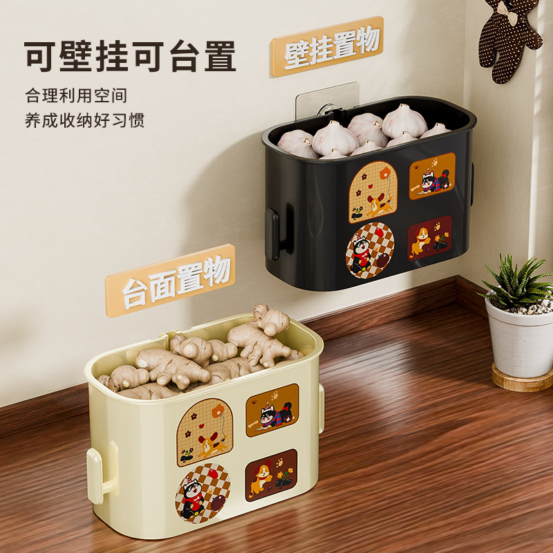 中古风厨房葱姜蒜收纳筐置物架挂篮卫生间墙收纳盒收纳篮放置台面