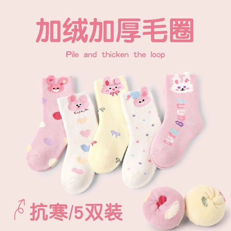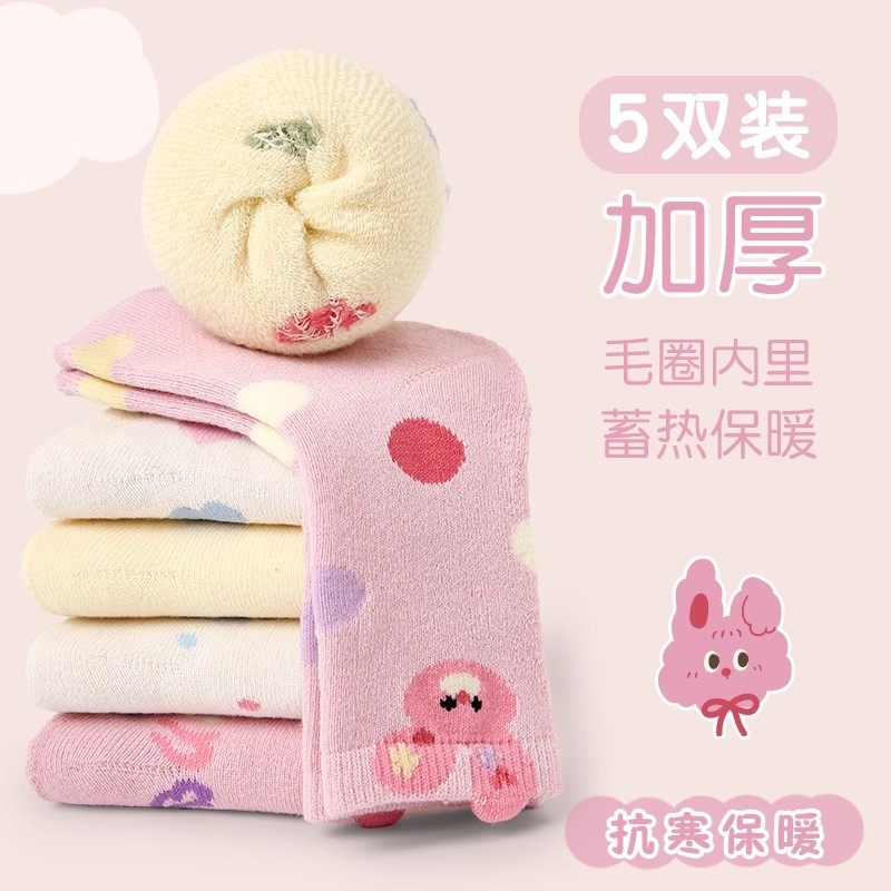 女童袜子秋冬女宝可爱保暖毛圈袜儿童冬季男孩加绒加厚中筒毛巾袜