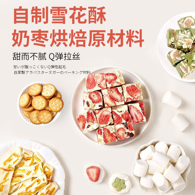 雪花酥饼干原材料专用套餐纽扣小奇福小圆饼牛轧饼棉花糖烘焙500g