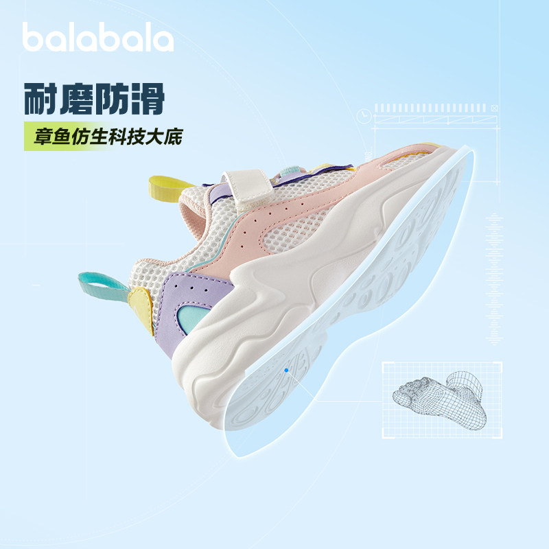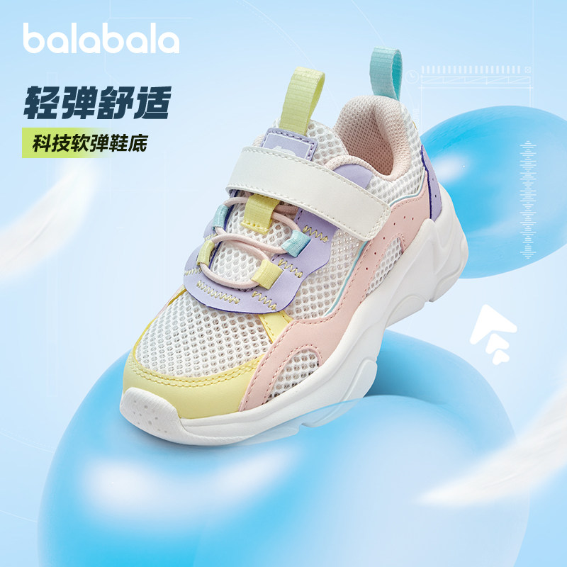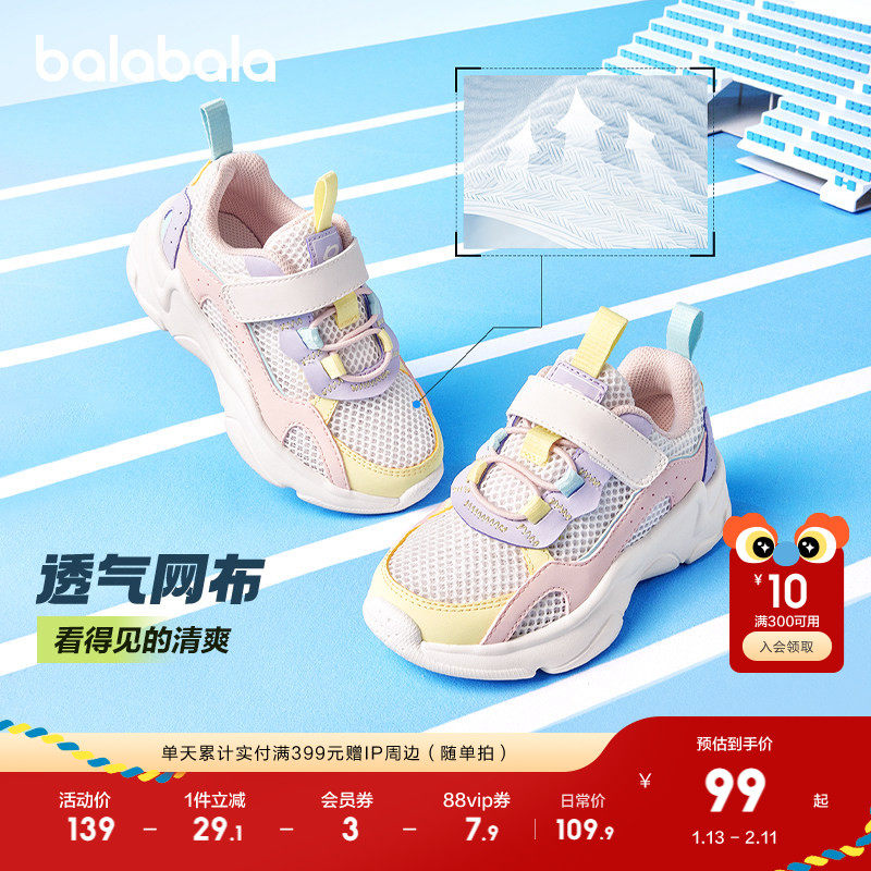 巴拉巴拉儿童运动鞋透气男童女童鞋子2025夏新款老爹鞋网布小白鞋