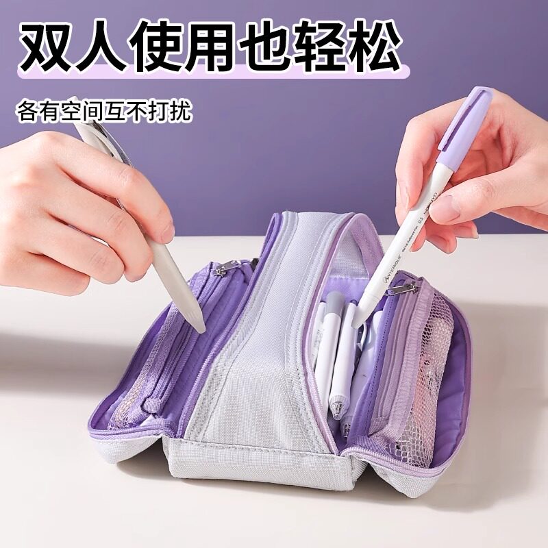日本国誉KOKUYO笔袋双拉链笔袋Campus大容量文具盒多功能分类收纳磁吸设计可平摊收纳包学生笔盒