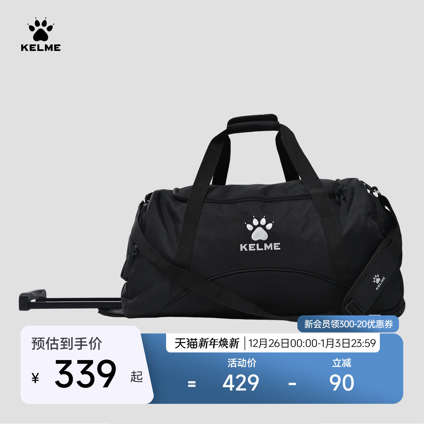 KELME卡尔美运动拉杆包拉杆箱大容量旅行包手提单肩斜挎行李袋