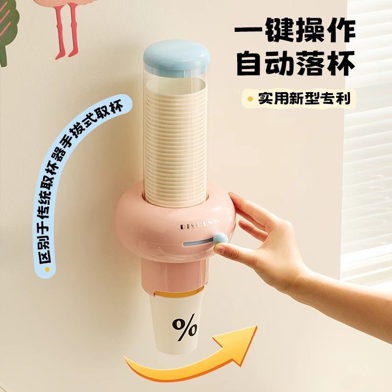 多巴胺自动取杯器一次性杯子挂架免打孔壁挂式创意收纳家用防尘