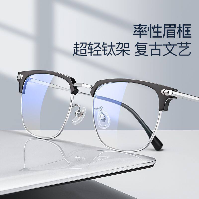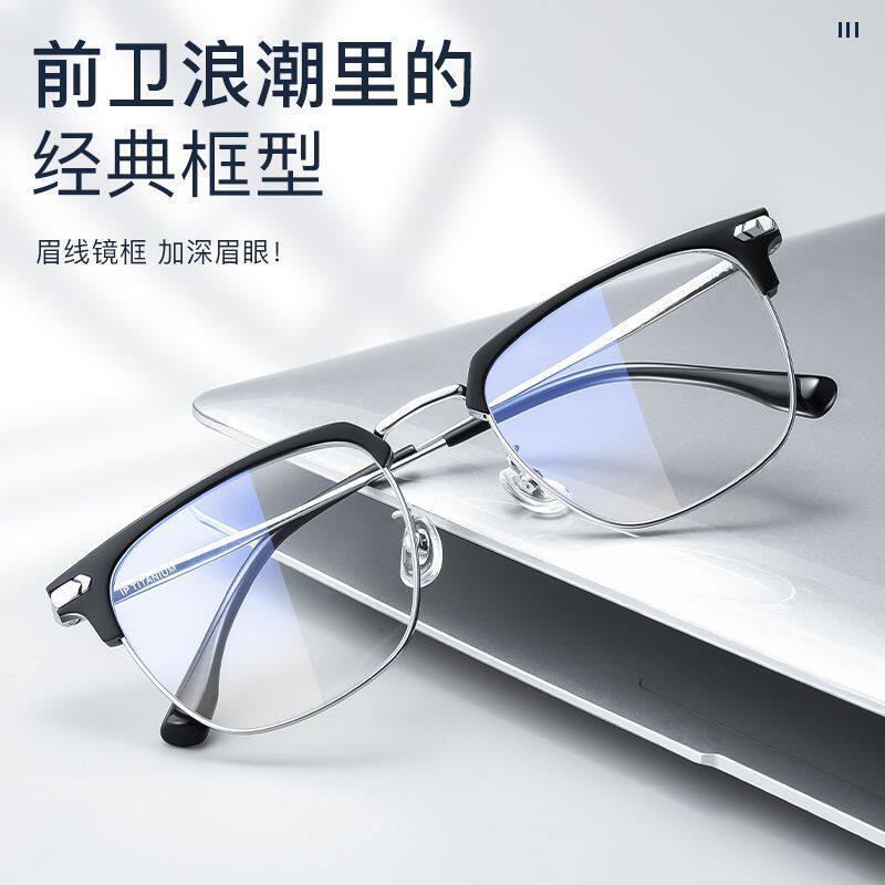 防蓝光半框眼镜近视男可配度数男款超轻黑框眼睛专业配镜斯文镜框