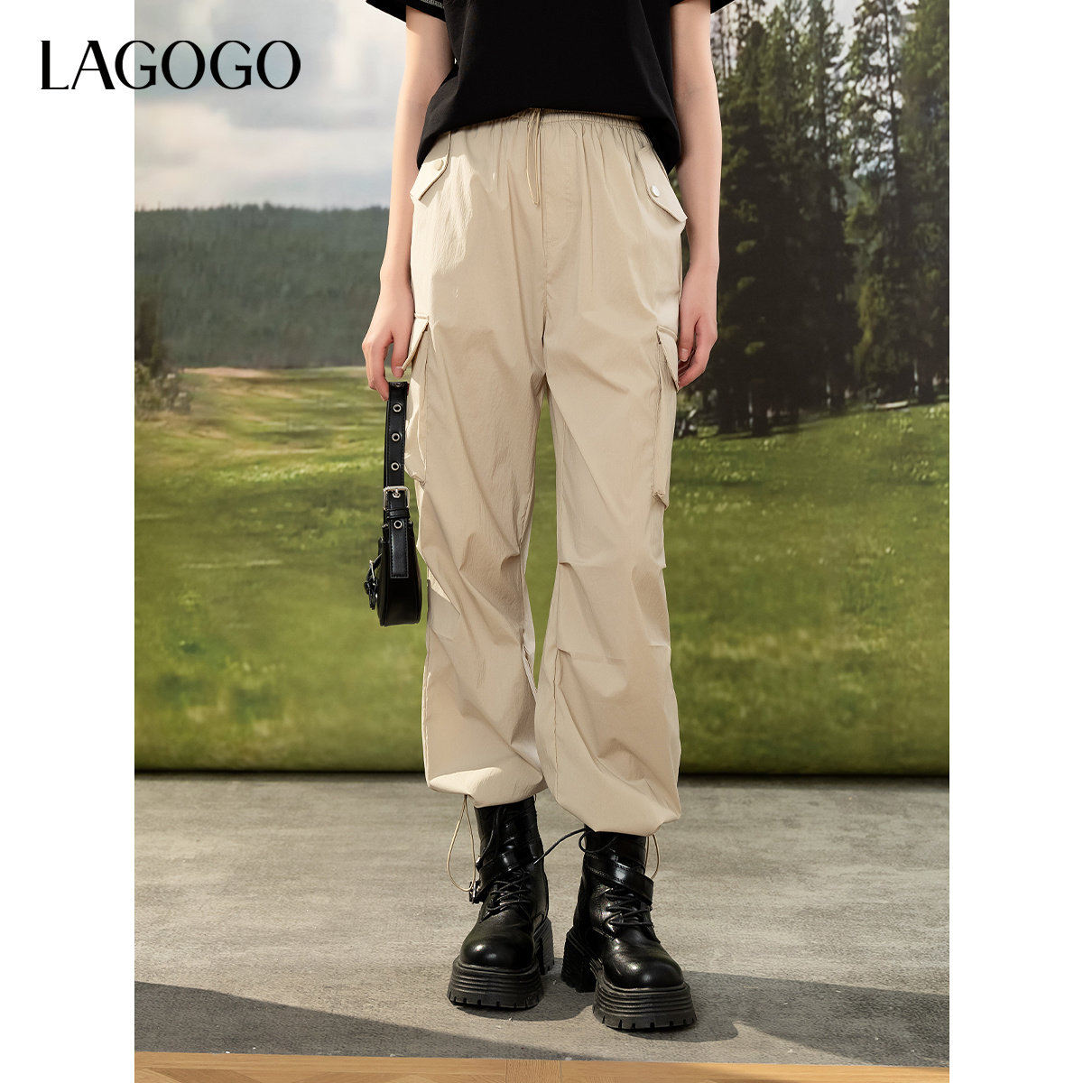 【凉感速干】LAGOGO户外穿搭工装裤女拉谷谷2026夏季款高腰休闲裤