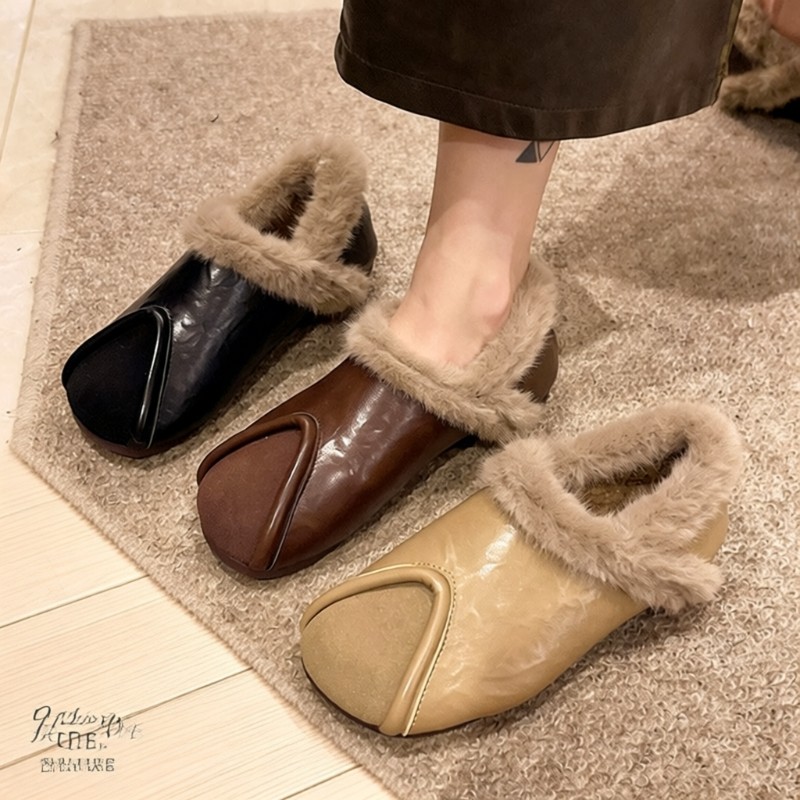 小众复古毛毛鞋女冬外穿2025新款可踩跟两穿加绒豆豆鞋保暖棉瓢鞋