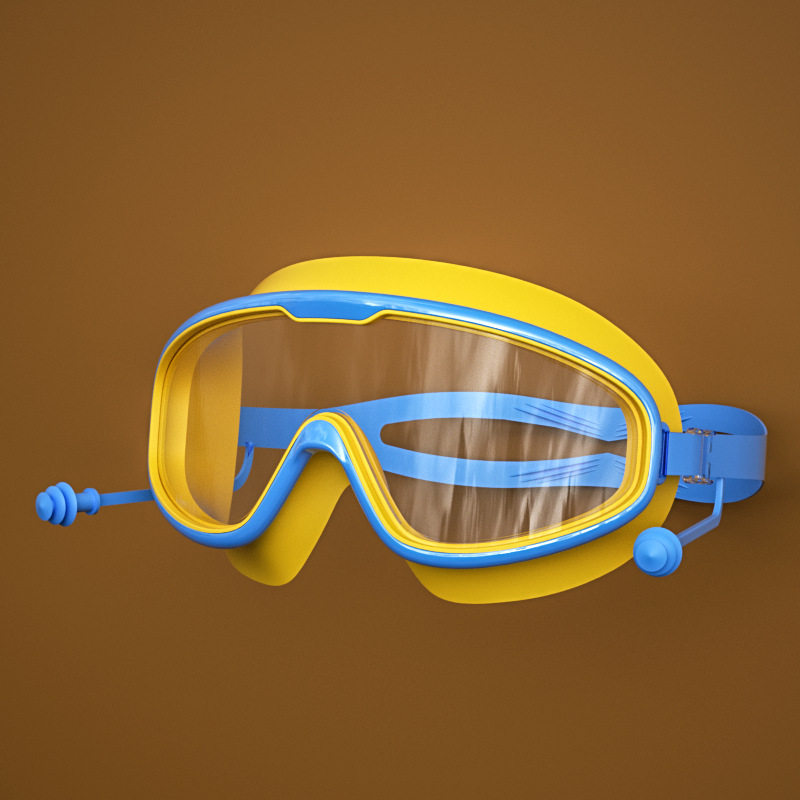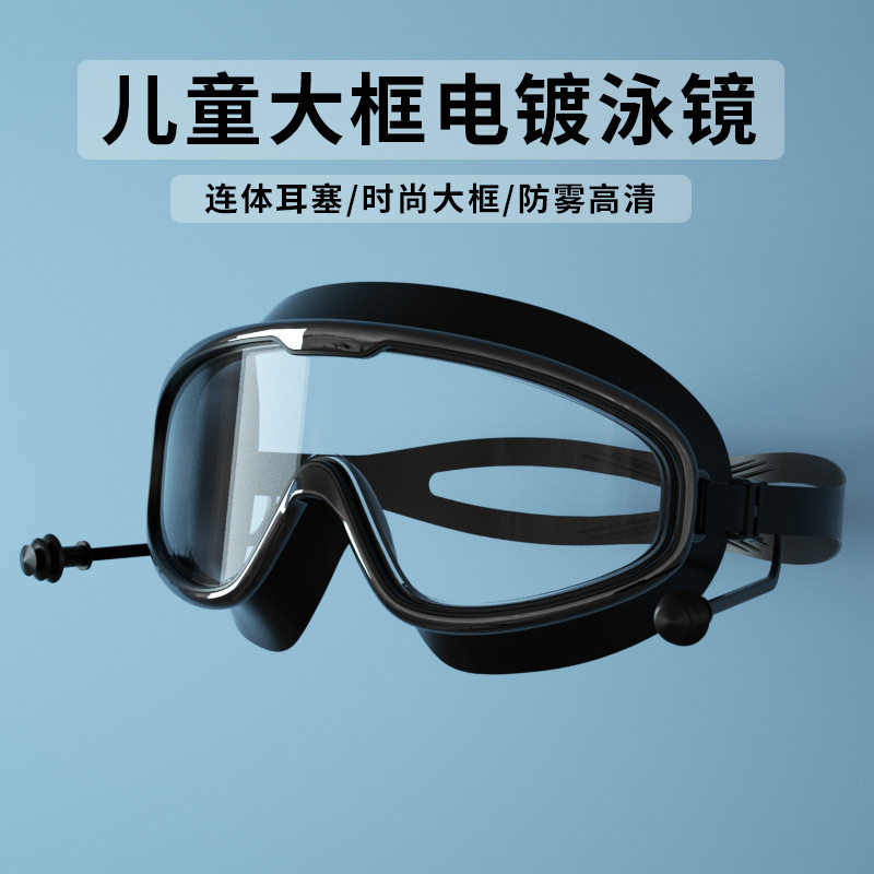 儿童大框泳镜时尚高清防雾游泳眼镜连体耳塞男女童电镀潜水镜炫彩