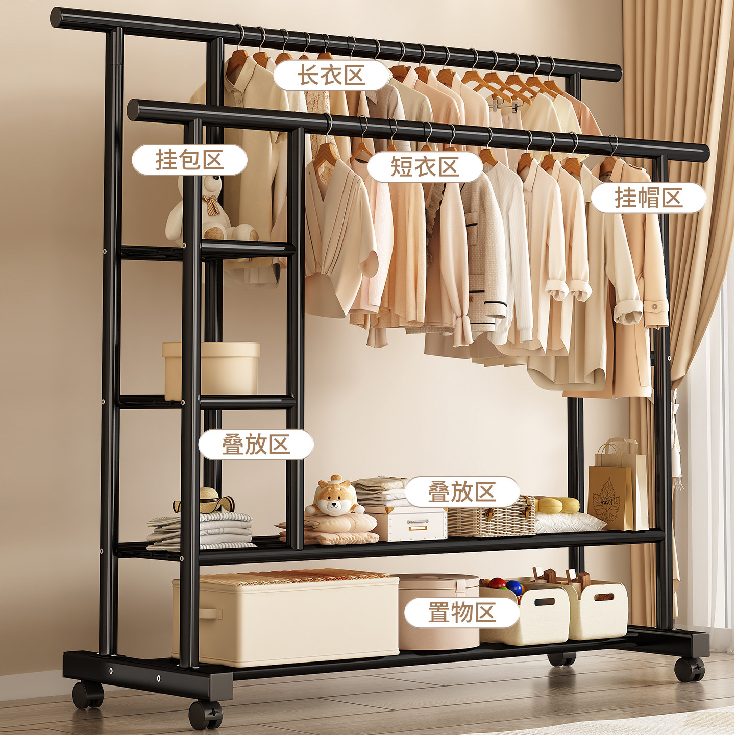 衣帽架落地卧室家用房间挂衣架置物晾衣架简易移动收纳挂衣服架子