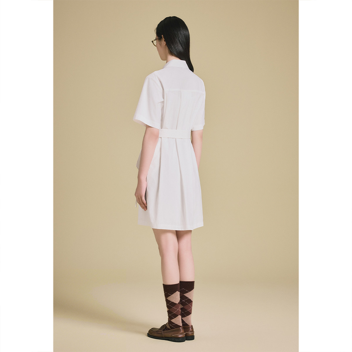 森马连衣裙女收腰衬衫裙复古休闲潮流百搭夏季美拉德纯色短裙气质