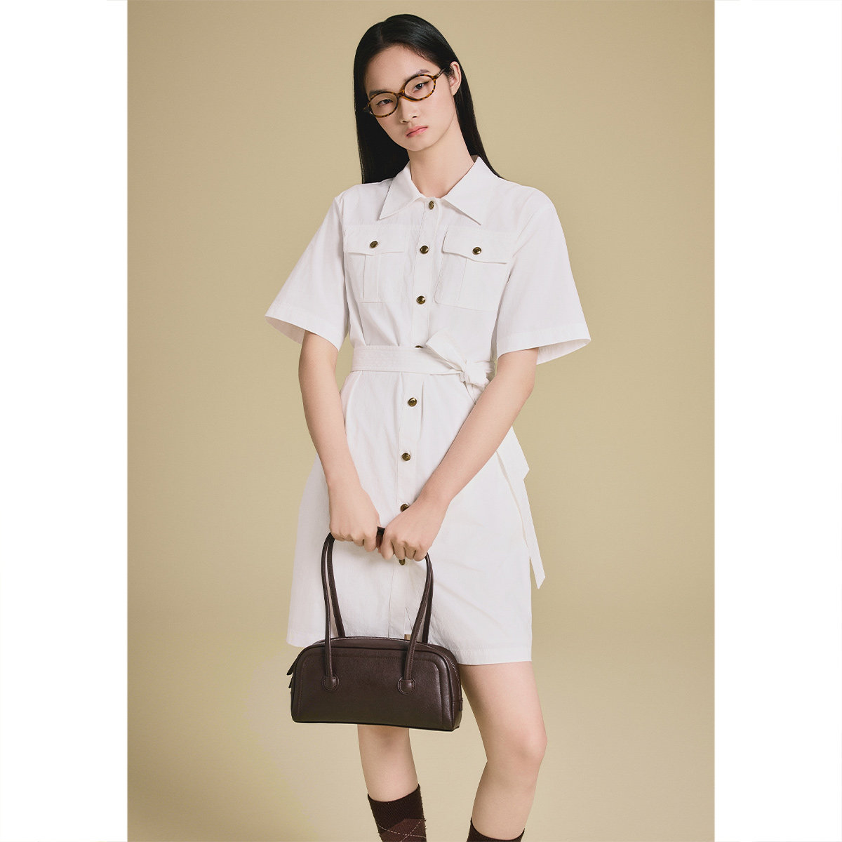 PSALTER诗篇工装短袖双口袋腰带显瘦衬衫裙连衣裙2025夏季新款