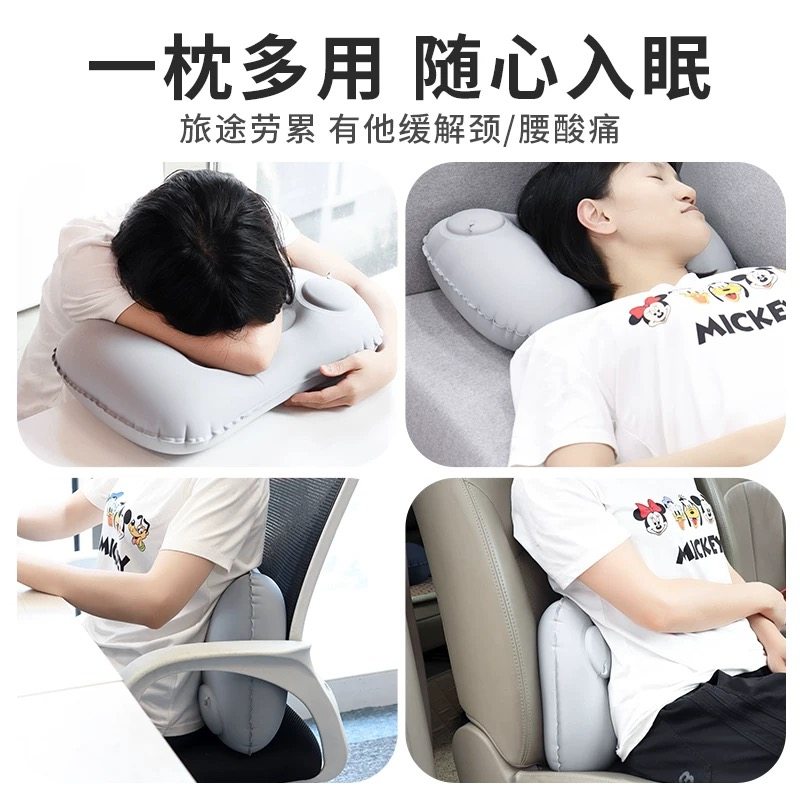 充气旅行枕头便携按压自动枕头飞机腰垫趴睡飞机护腰枕靠枕腰靠垫