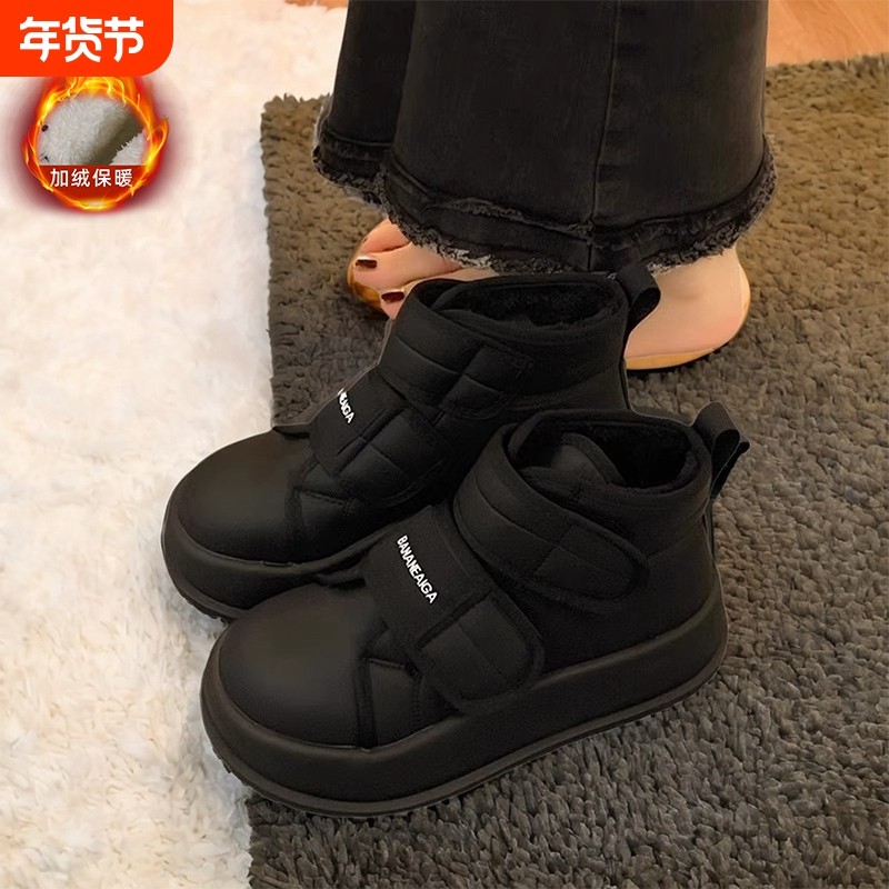 厚底雪地靴女款2025秋冬新款加绒保暖东北大棉鞋面包鞋黑色防滑